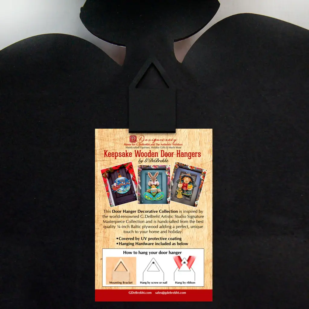 This Holiday Door hanger Collection is inspired by the well renowned G. DeBrekht Artistic Studios Iconic Holiday Masterpiece collection. A must have for Holiday Wall Hanging, Door Hanging or Holiday Mantel. It makes a wonderful collectible and nostalgic gift and perfect statement piece for family and friends to enjoy. ? This Decoration is perfect for INDOOR and OUTDOOR? Overall Size: approximately 24 x 18 x .25 inches? Baltic plywood (thickness), sturdy but lightweight enough for hanging? Weather-resistant product - UV protective coat for outdoor use ? Hardware for Hanging attached? Handcrafted in the USA• Some decorations on items may be slightly varied due to the handcrafted nature of the product.Using painting mediums of watercolor, acrylic, and oil combinations G. DeBrekht we have developed a unique painting style. Decorating your home for Christmas is a special time for families, for a perfect holiday home decor that you can create your own style and cultivates a holiday art gallery for all to enjoy. Size:24 x 18 x 1/4 Catalog#7H-KEEPSAKE WOOD DH-Holiday Accents & Decor