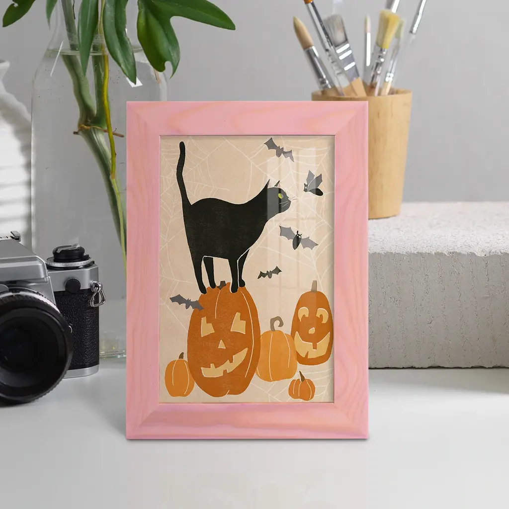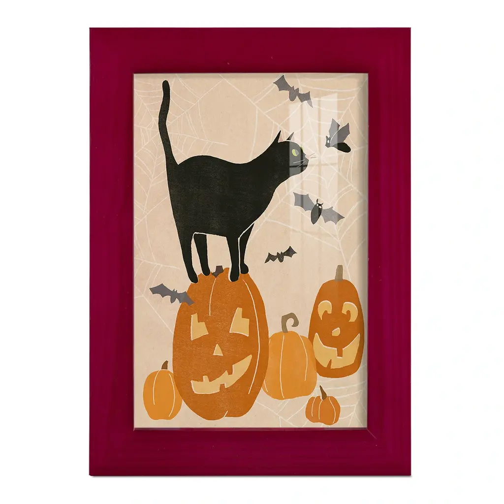Pumpkin Patch Cats I -EZ SWITCH Framed Print w/glass-Cherry Red A delightful, framed print. Featuring a solid wood frame with real wood glass. This premium print is giclee quality. In addition, every frame features a removable back and table top stand. This allows you to change your art in the future or to just stand the art on a table for a new look. We are sure you'll enjoy our new series of EZ SWITCH Framed Art. Solid Wood Frame Real Glass Removable / Replaceable Art Built in Tabletop Stand Sizes range from 4x6 up to 12x15 - buy just one or pair them up as sets as you see fit.