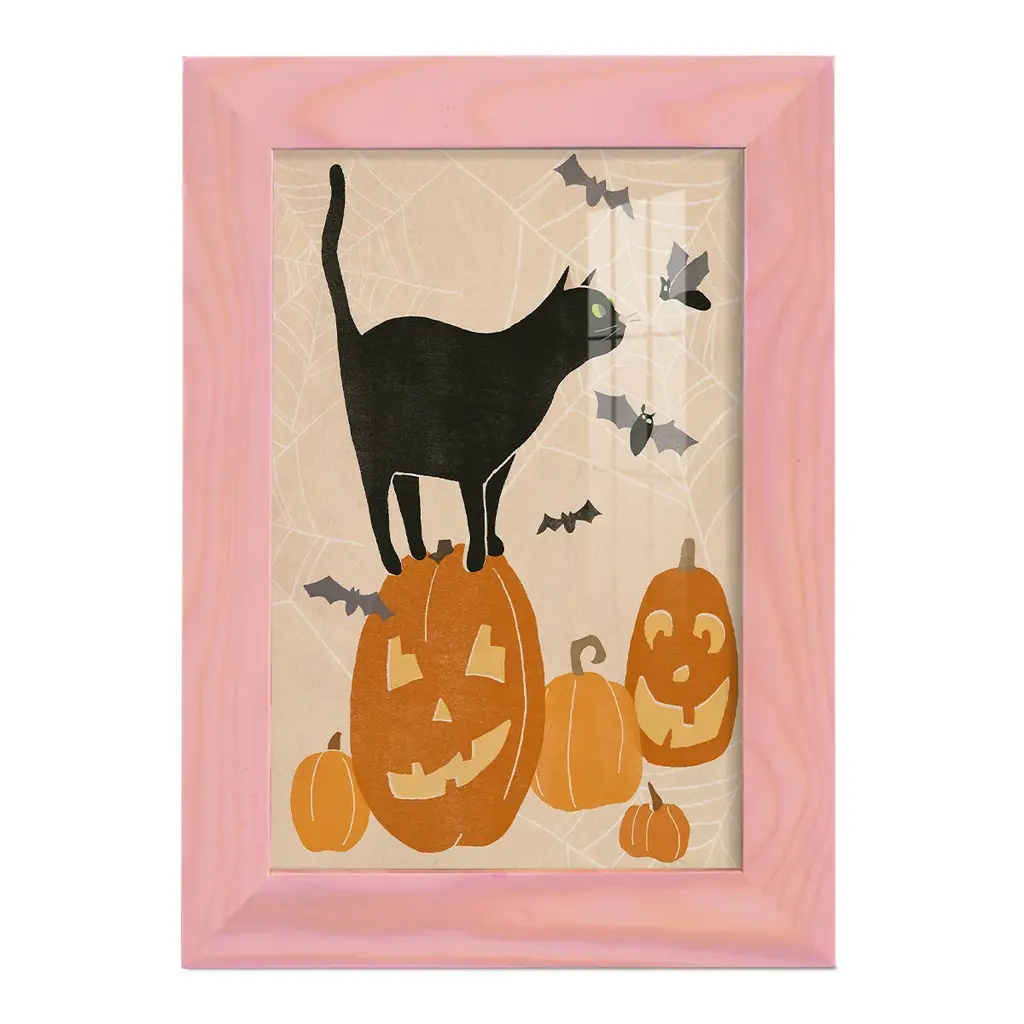 Pumpkin Patch Cats I -Framed Print W/glass-Cherry Red - 4X6 - Natural