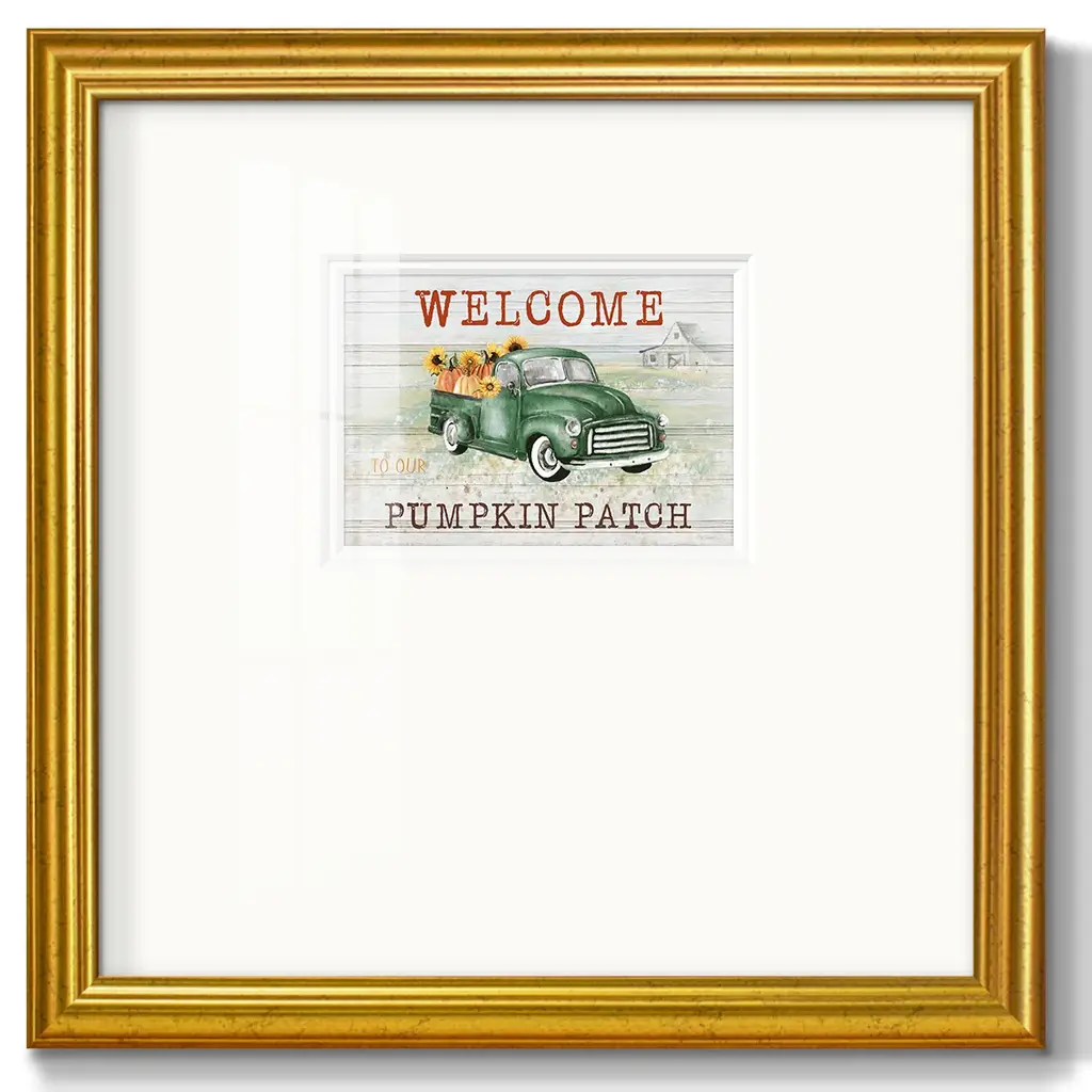 Pumpkin PatchPremium Framed Print A framed cold pressed paper print featuring superior double matting and quality frame. 2 SIZES AVAILABLE 16''X16''' - Overall Size 20''X20''' - Overall Size Each piece is made to order. Each piece comes with hanging hardware. Made in the USA Ready to Hang Giclee Paper Print Plexiglass Beveled Matt Board Double Matte Board