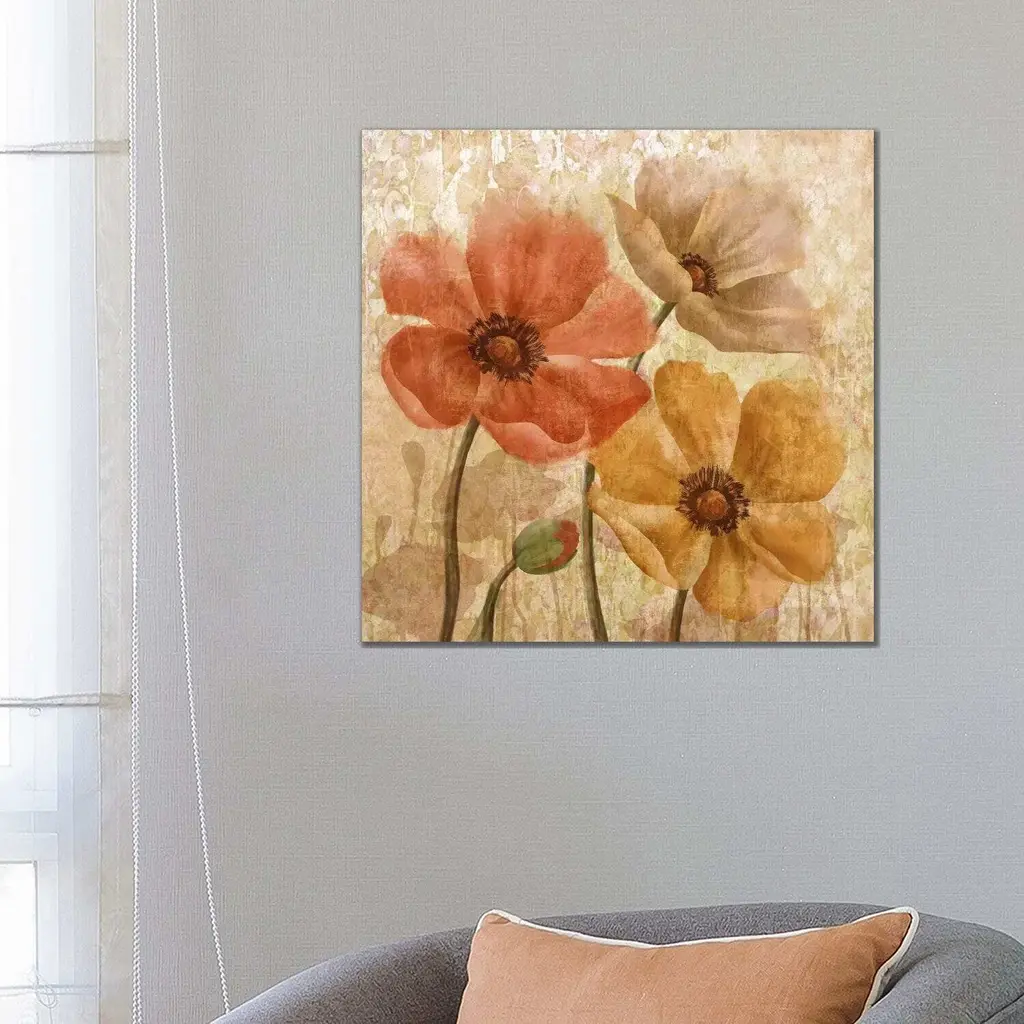 "Pumpkin Poppies I" Museum Mounted Canvas Print, 14"x11"