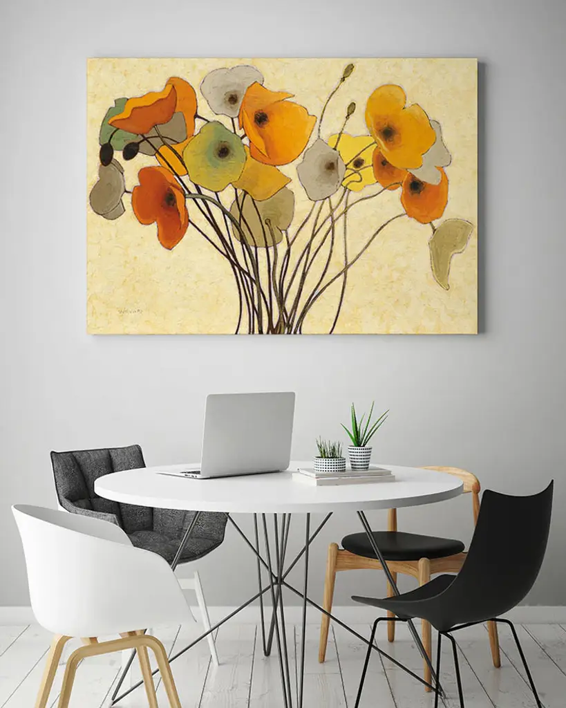 "Pumpkin Poppies I" Museum Mounted Canvas Print, 14"x11"