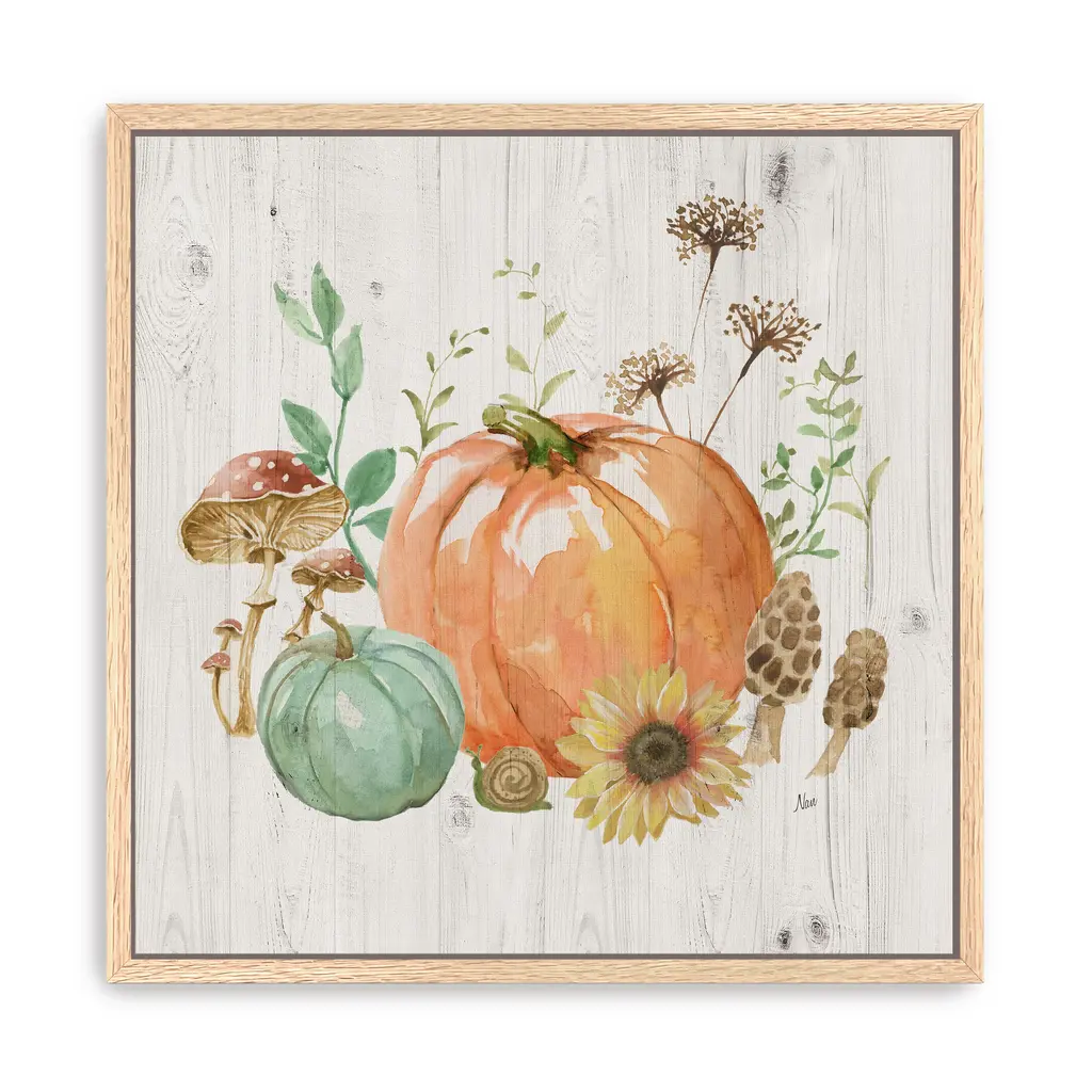 Pumpkins And Mushrooms I Canvas Giclee - Framed / Black / 40x40