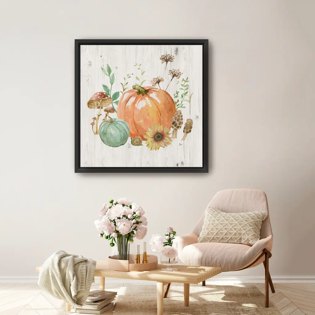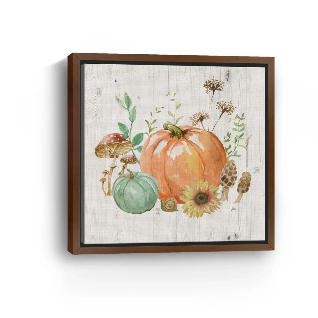 Pumpkins And Mushrooms I Canvas Giclee - Framed / Oak / 40x40