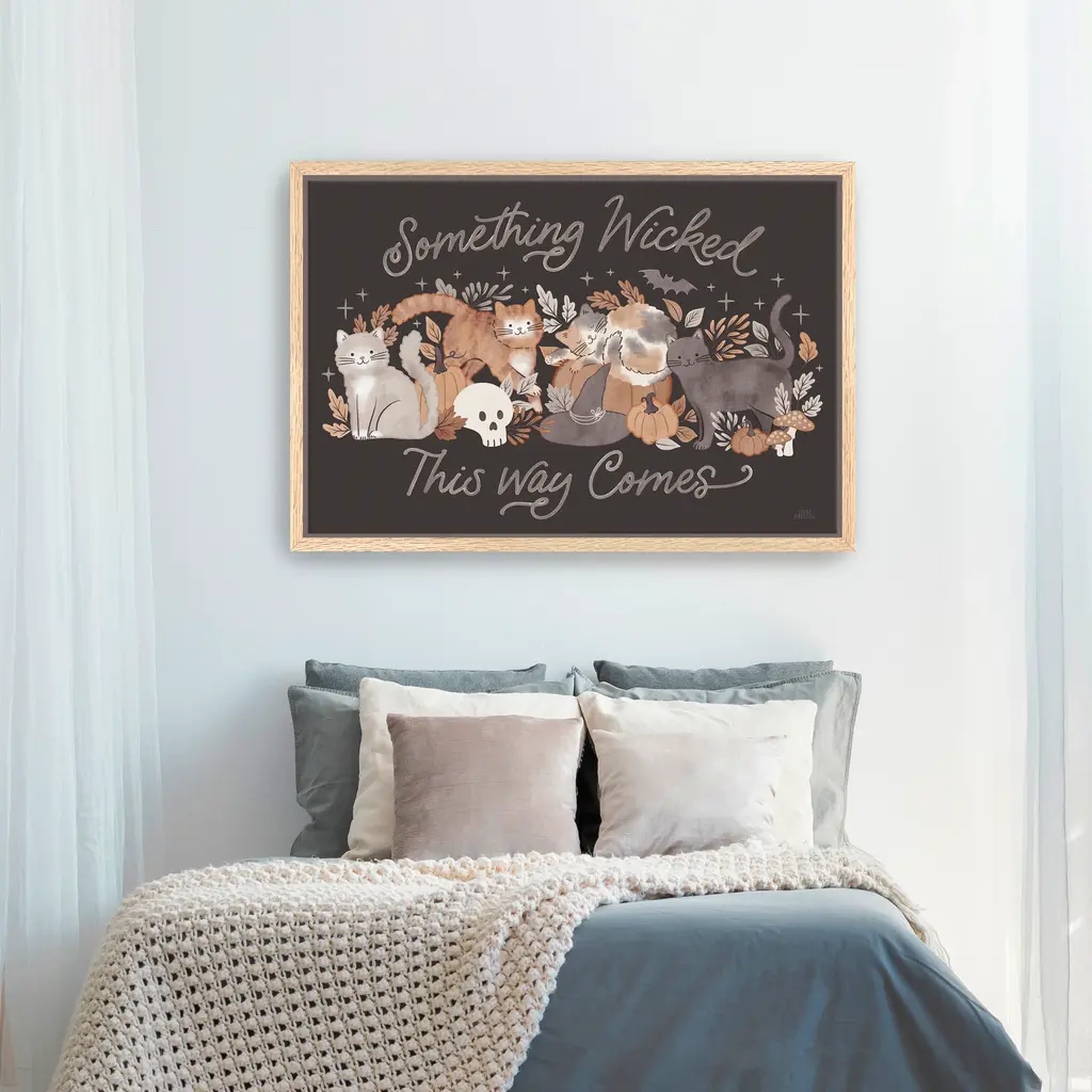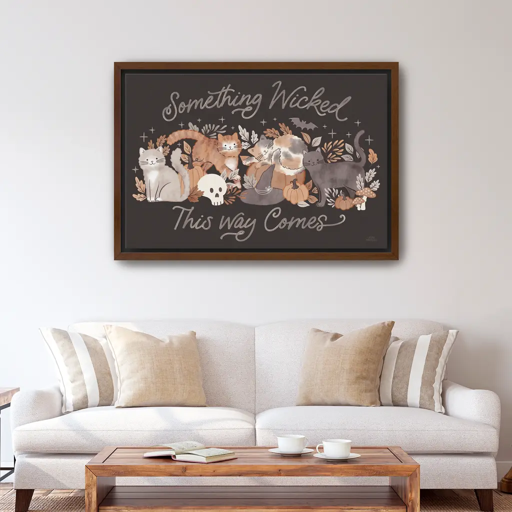 With its curious gaze and bony companion, these Halloween cats evokes mystery and festive magic. It's a classic scene where feline charm meets whimsy. Our Gallery Wrap Canvas Prints are proudly assembled with high quality materials in California, USA. Each piece is printed on a thick, archival grade canvas using Giclee technology. It is then hand-stretched by our experienced artisans over solid wood bars, which will not warp over time. The final product is a piece personally crafted for you to confidently display on your wall. Care and Assembly: Ensure that the location of your piece has little to no exposure to heat, sunlight, and moisture. Wipe clean, only if needed. Each piece includes a sawtooth hanger to hang on your wall horizontally.