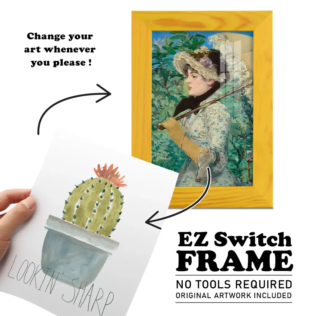 Punny Plant II -EZ SWITCH Framed Print w/glass-Cherry Red A delightful, framed print. Featuring a solid wood frame with real wood glass. This premium print is giclee quality. In addition, every frame features a removable back and table top stand. This allows you to change your art in the future or to just stand the art on a table for a new look. We are sure you'll enjoy our new series of EZ SWITCH Framed Art. Solid Wood Frame Real Glass Removable / Replaceable Art Built in Tabletop Stand Sizes range from 4x6 up to 12x15 - buy just one or pair them up as sets as you see fit.