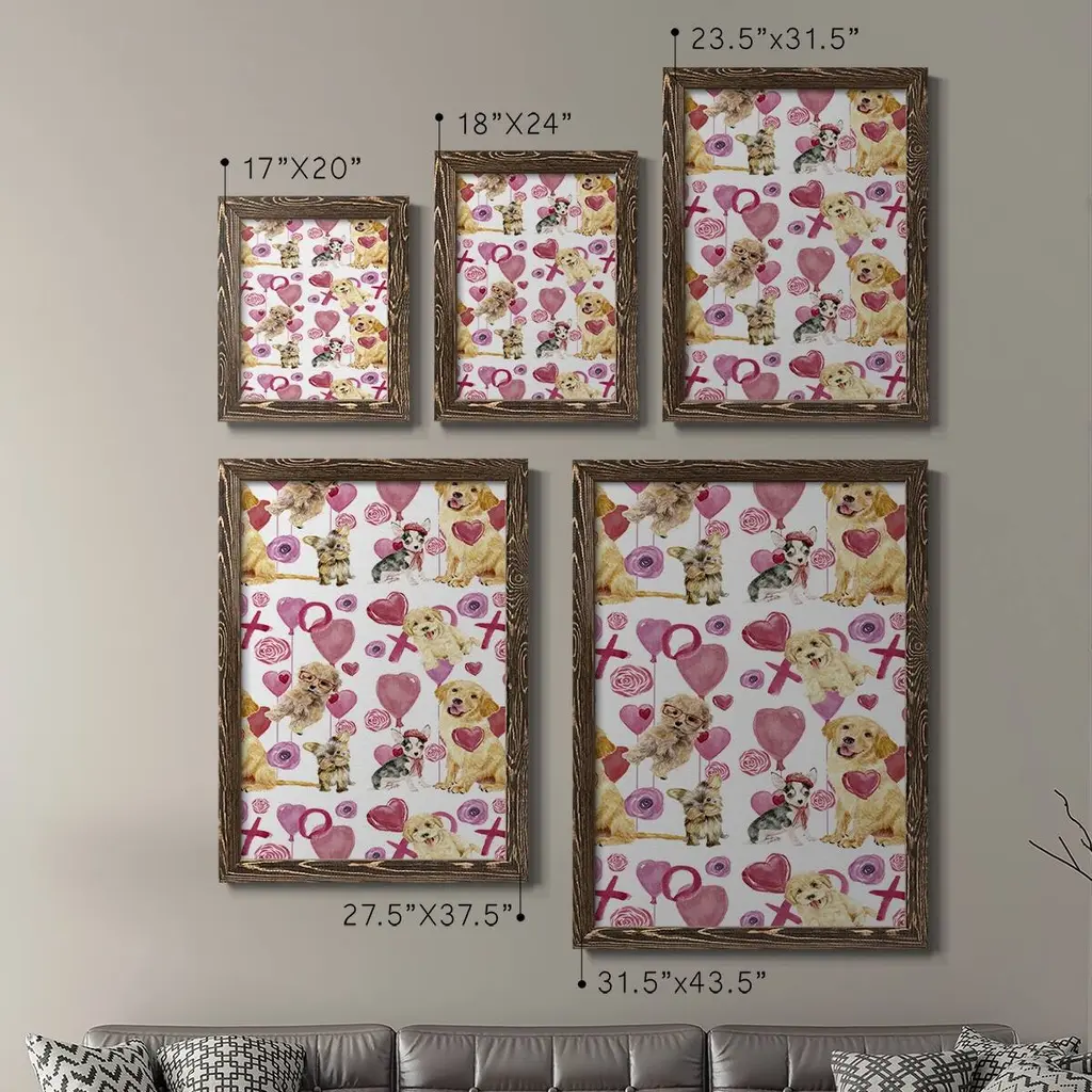 Puppy Valentine Collection E-Premium Framed Canvas - Ready To Hang - 27.5x37.5 - Grey