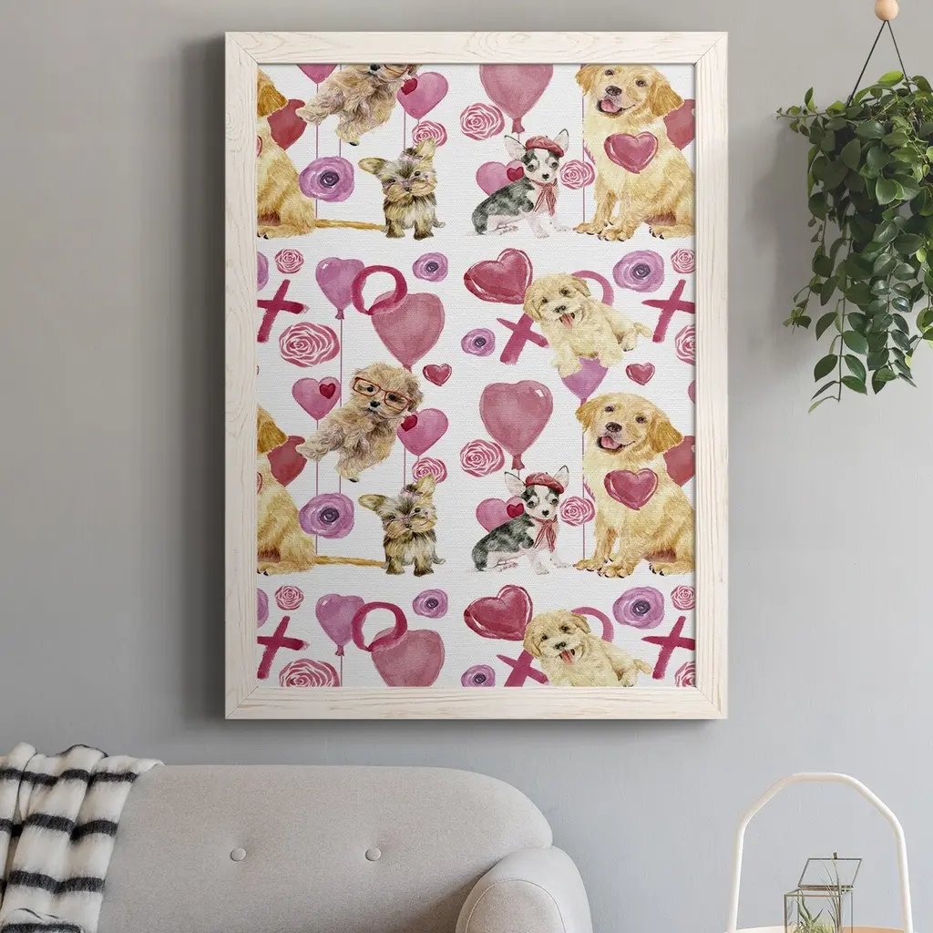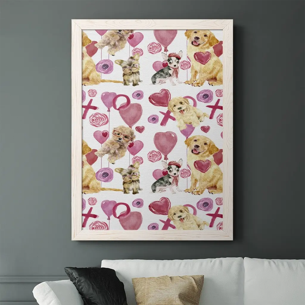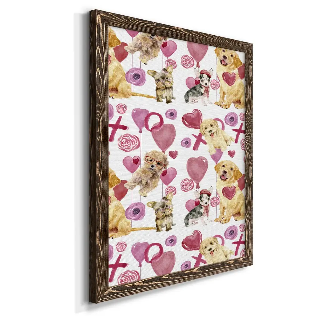Puppy Valentine Collection E-Premium Framed Canvas - Ready To Hang - 31.5x43.5 - Walnut