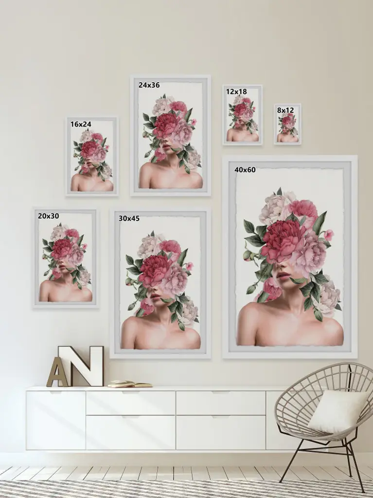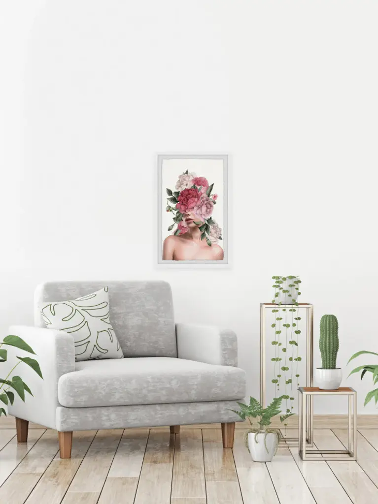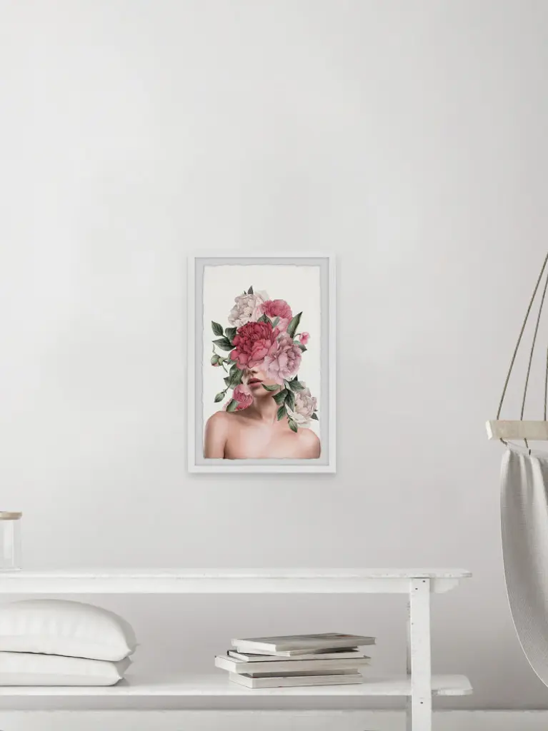 This photographic print features a picturesque arrangement of pink flowers that partially cover a woman''s face. Proudly printed in the USA, this piece is printed on high quality archive paper and professionally hand-framed. With wall-mounting hooks included, this artful accent is ready to hang up as soon as it reaches your front door.Top quality Giclee print on high resolution Archive PaperHand cut deckled edgesHigh quality durable non-warping frameFinished under shatter resistant plexiglassArrives ready to hangIncludes a certificate of authenticityPrinted in the USA