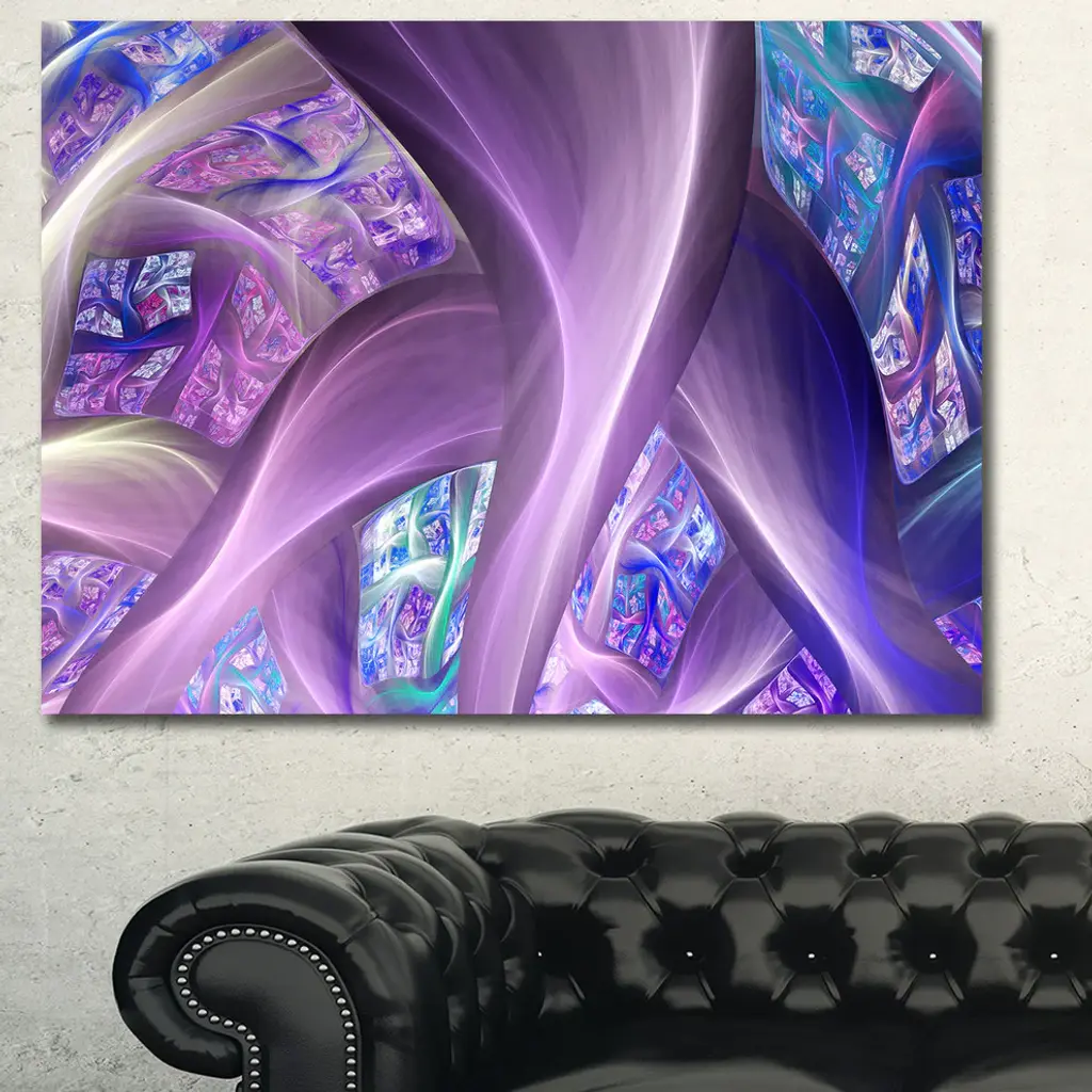 Purple Blue Fractal Curves, Oversized Abstract Canvas Art Print, 60x40