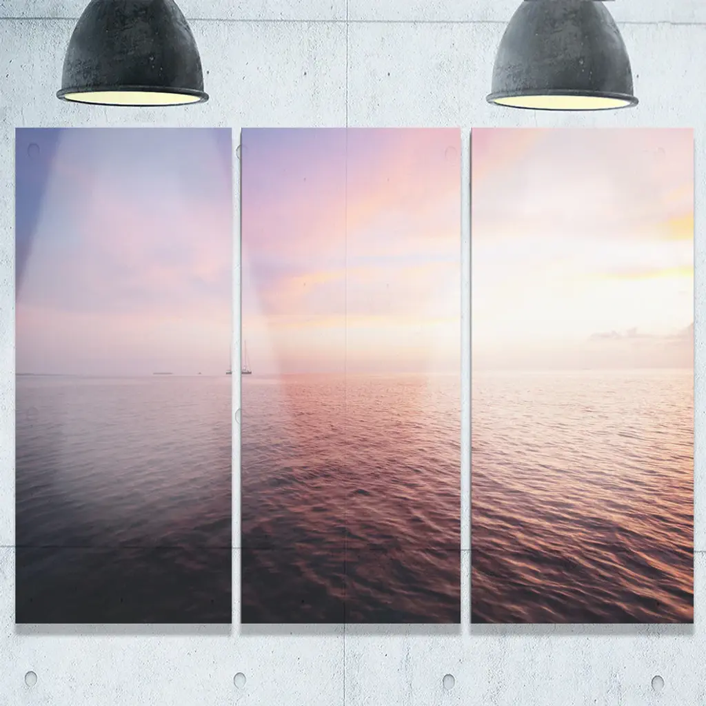 "Purple Cloudy Seascape View" Beach Metal Wall Art, 3 Panels, 36"x28"