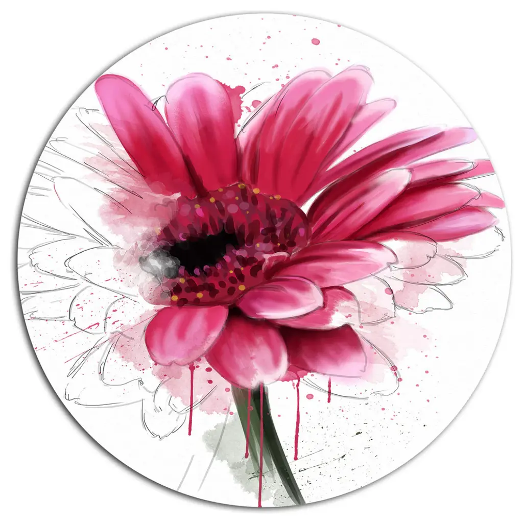 Bring Contemporary Abstraction to your home with this large Circle Metal wall art. This Purple Flower Sketch with Stem Metal Artwork makes it the focal point of any room or office. - White Gloss Coating ensures colors are extra vibrant with light reflection.- Aluminum grade Sheet Metal with 1 inch mounting frame on the back giving the illusion that the artwork is floating on the wall..- Mounting Brackets are included along with instructions.- High Quality Digital images are created directly into a glossy aluminum panel producing a stunning and captivating print into the glossy finish of the metal.- Water, Fire and Scratch resistant HD Aluminum panels.- Looks better than any photo paper and guaranteed to last at least 20 years- Easy to clean with a microfiber cloth. Colors are far superior to regular Canvas Art. - Easy to Hang