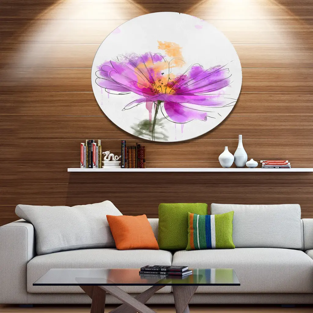 Purple Flower Watercolor Illustration, Flowers Disc Metal Artwork, 36"