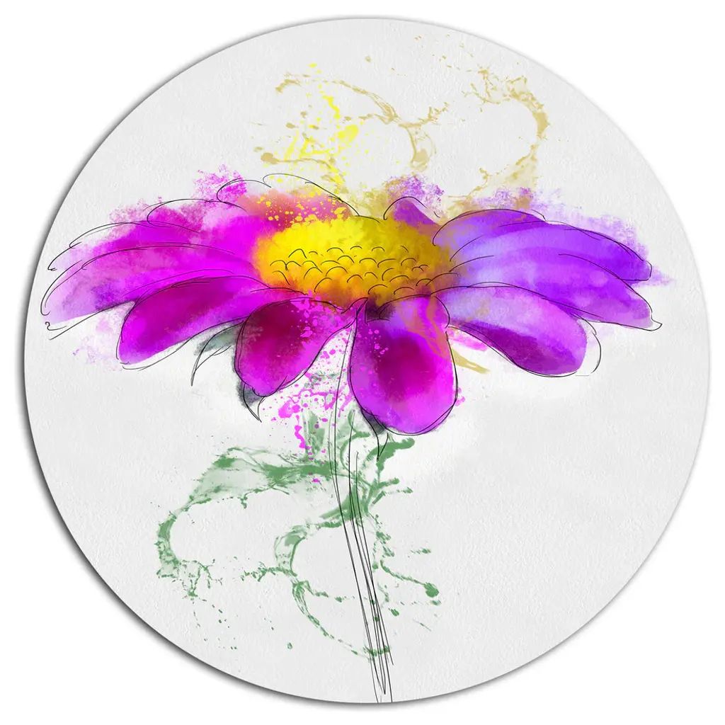 Bring Contemporary Abstraction to your home with this large Circle Metal wall art. This Purple Flower with Green Leaves Metal Artwork makes it the focal point of any room or office. - White Gloss Coating ensures colors are extra vibrant with light reflection.- Aluminum grade Sheet Metal with 1 inch mounting frame on the back giving the illusion that the artwork is floating on the wall..- Mounting Brackets are included along with instructions.- High Quality Digital images are created directly into a glossy aluminum panel producing a stunning and captivating print into the glossy finish of the metal.- Water, Fire and Scratch resistant HD Aluminum panels.- Looks better than any photo paper and guaranteed to last at least 20 years- Easy to clean with a microfiber cloth. Colors are far superior to regular Canvas Art. - Easy to Hang