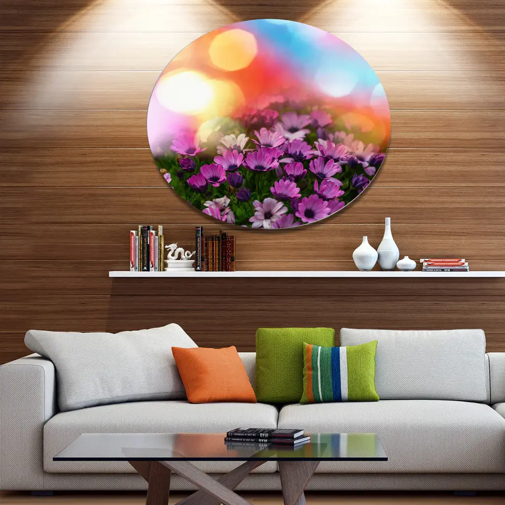 Purple Flowers On Colorful Background, Flower Round Wall Art, 36"