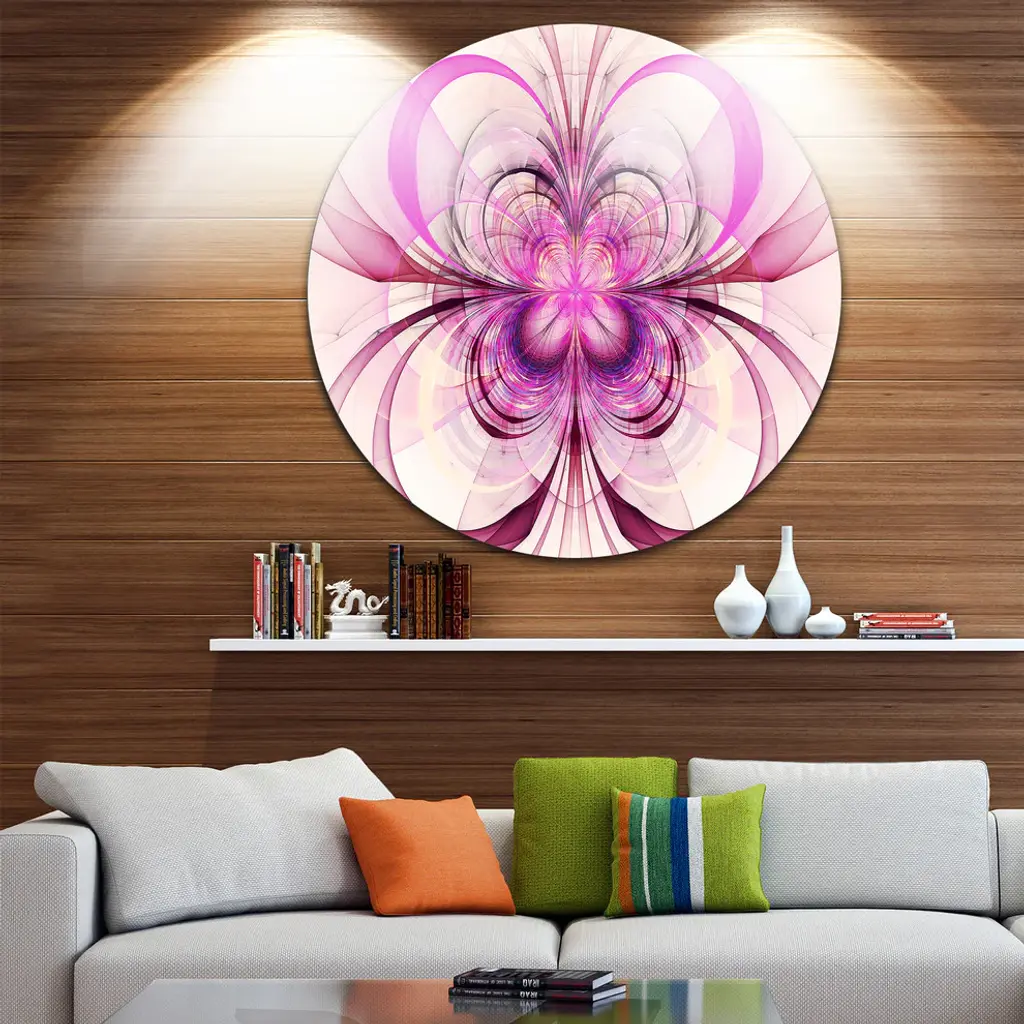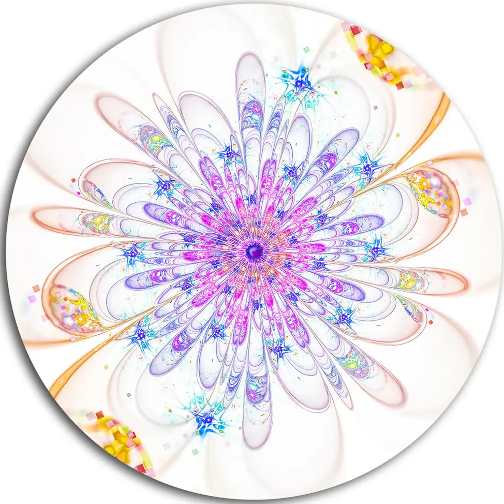 Bring Contemporary Abstraction to your home with this large Circle Metal wall art. This Purple Fractal Flower Pattern Metal Artwork makes it the focal point of any room or office. - White Gloss Coating ensures colors are extra vibrant with light reflection.- Aluminum grade Sheet Metal with 1 inch mounting frame on the back giving the illusion that the artwork is floating on the wall..- Mounting Brackets are included along with instructions.- High Quality Digital images are created directly into a glossy aluminum panel producing a stunning and captivating print into the glossy finish of the metal.- Water, Fire and Scratch resistant HD Aluminum panels.- Looks better than any photo paper and guaranteed to last at least 20 years- Easy to clean with a microfiber cloth. Colors are far superior to regular Canvas Art. - Easy to Hang