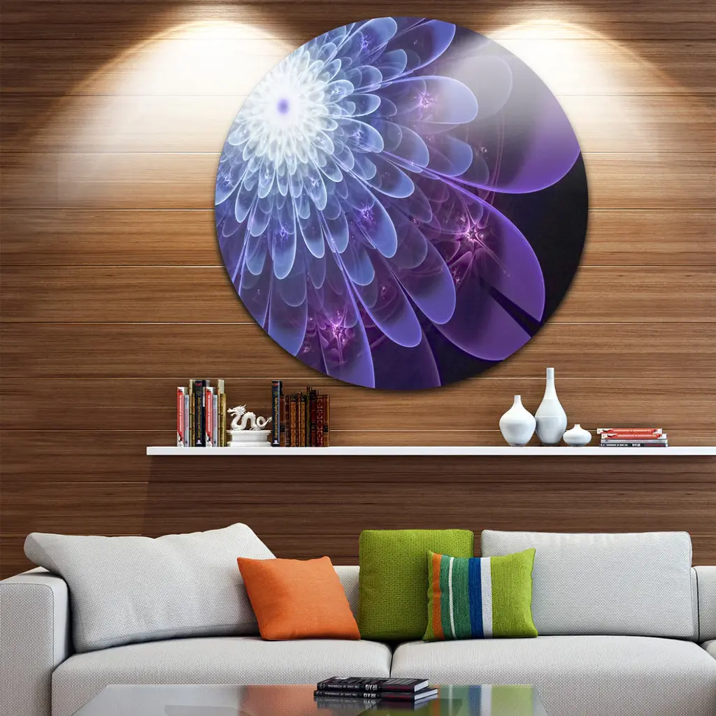 Bring Contemporary Abstraction to your home with this large Circle Metal wall art. This Purple Fractal Flower Petals Close-up Metal Artwork makes it the focal point of any room or office. - White Gloss Coating ensures colors are extra vibrant with light reflection.- Aluminum grade Sheet Metal with 1 inch mounting frame on the back giving the illusion that the artwork is floating on the wall..- Mounting Brackets are included along with instructions.- High Quality Digital images are created directly into a glossy aluminum panel producing a stunning and captivating print into the glossy finish of the metal.- Water, Fire and Scratch resistant HD Aluminum panels.- Looks better than any photo paper and guaranteed to last at least 20 years- Easy to clean with a microfiber cloth. Colors are far superior to regular Canvas Art. - Easy to Hang