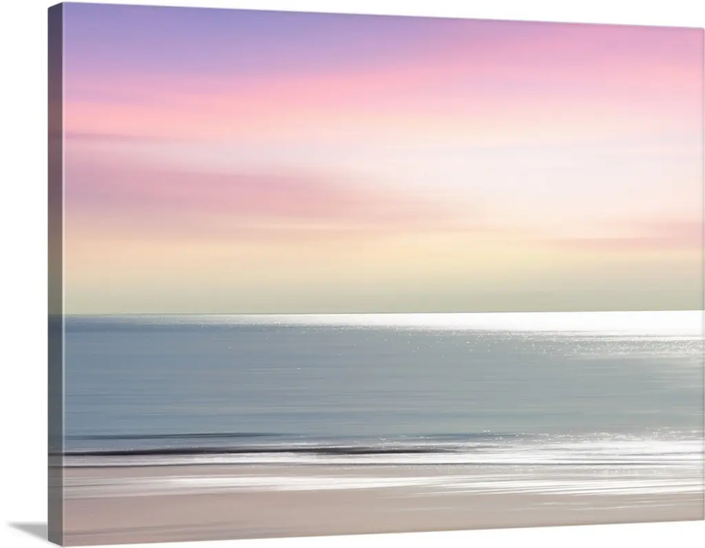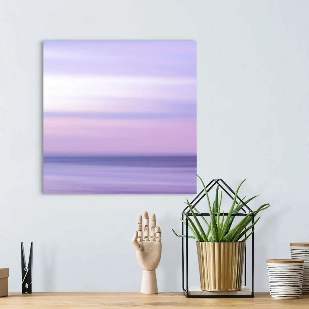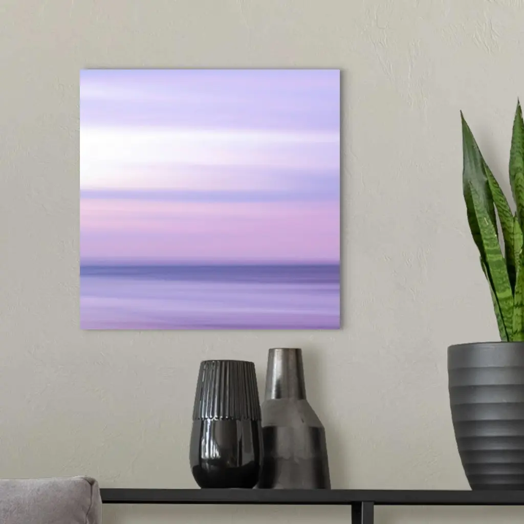 Abstract artwork of a sunset sky over the ocean with a haze over the entire piece to give it a softer look.
