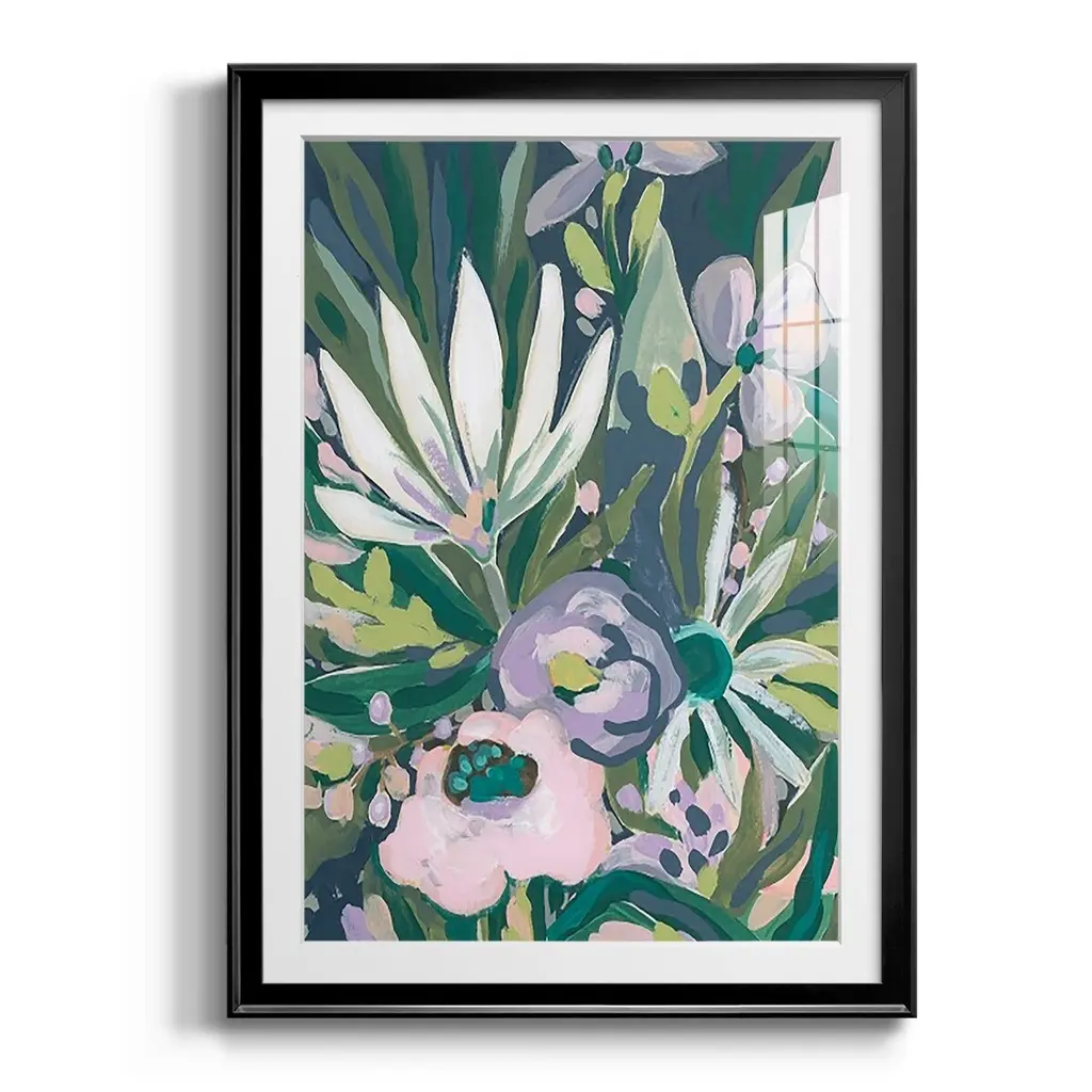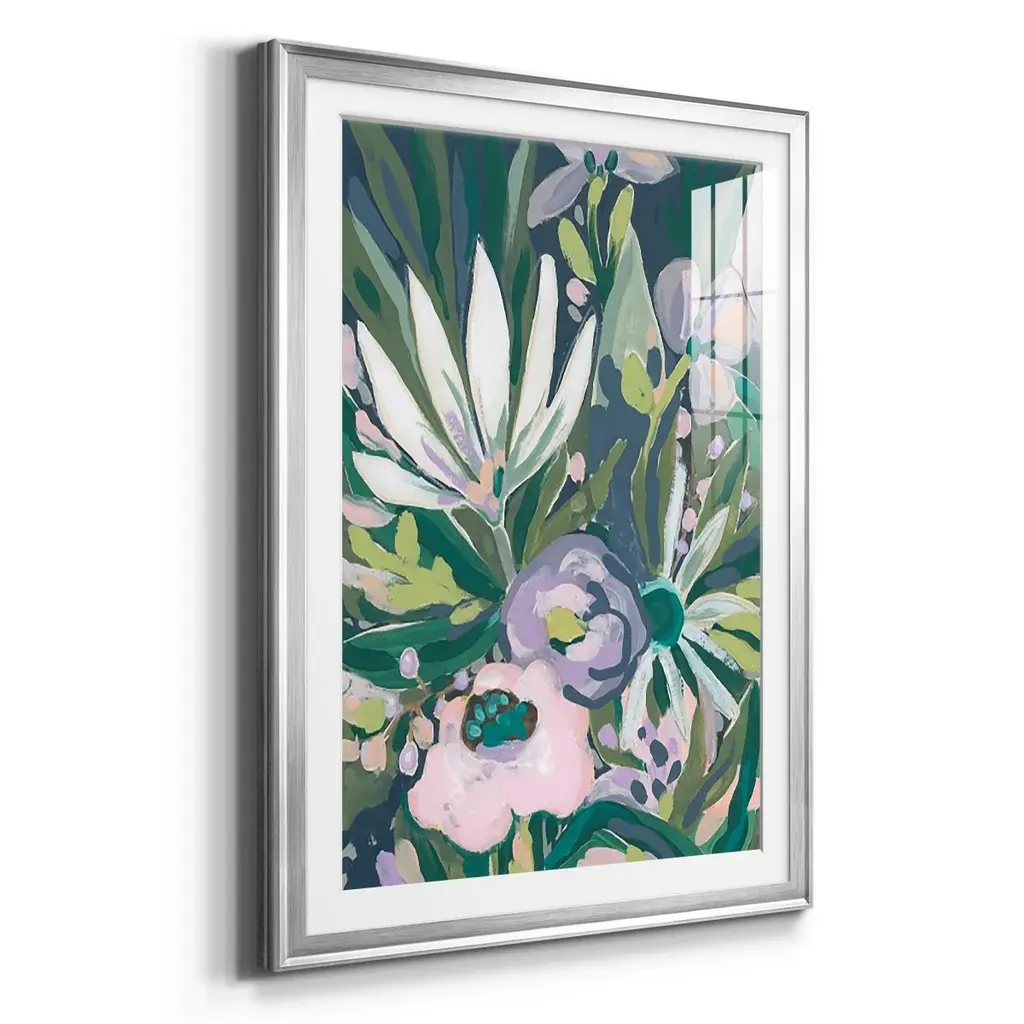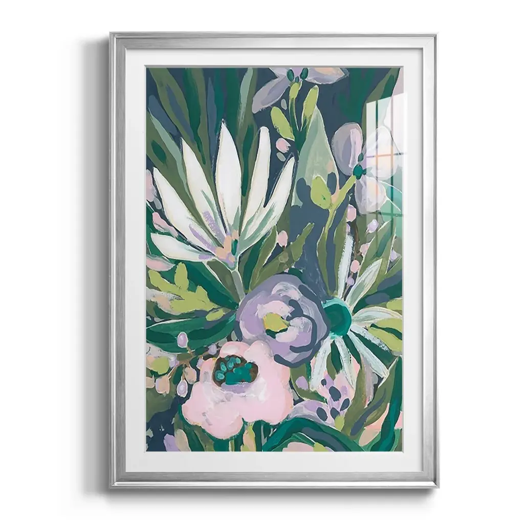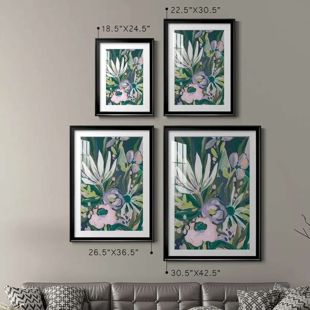 Purple Jungle Garden I Premium Framed Print - Ready to Hang A Premium Framed Print created to last. Framed in distressed wood and available in an array of sizes and colors Featuring a beveled a solid wood stretcher bar, each piece comes ready to hand 4 SIZES AVAILABLE 30.5''X42.5'' - Overall Size 26.5'X36.5'' - Overall Size 22.5''x30.5'' - Overall Size 18.5''x24.5'' - Overall Size Each piece is made to order. Each piece comes with hanging hardware. Made in the USA Ready to Hang Giclee Paper Print Acrylic Glass Beveled Matt Board