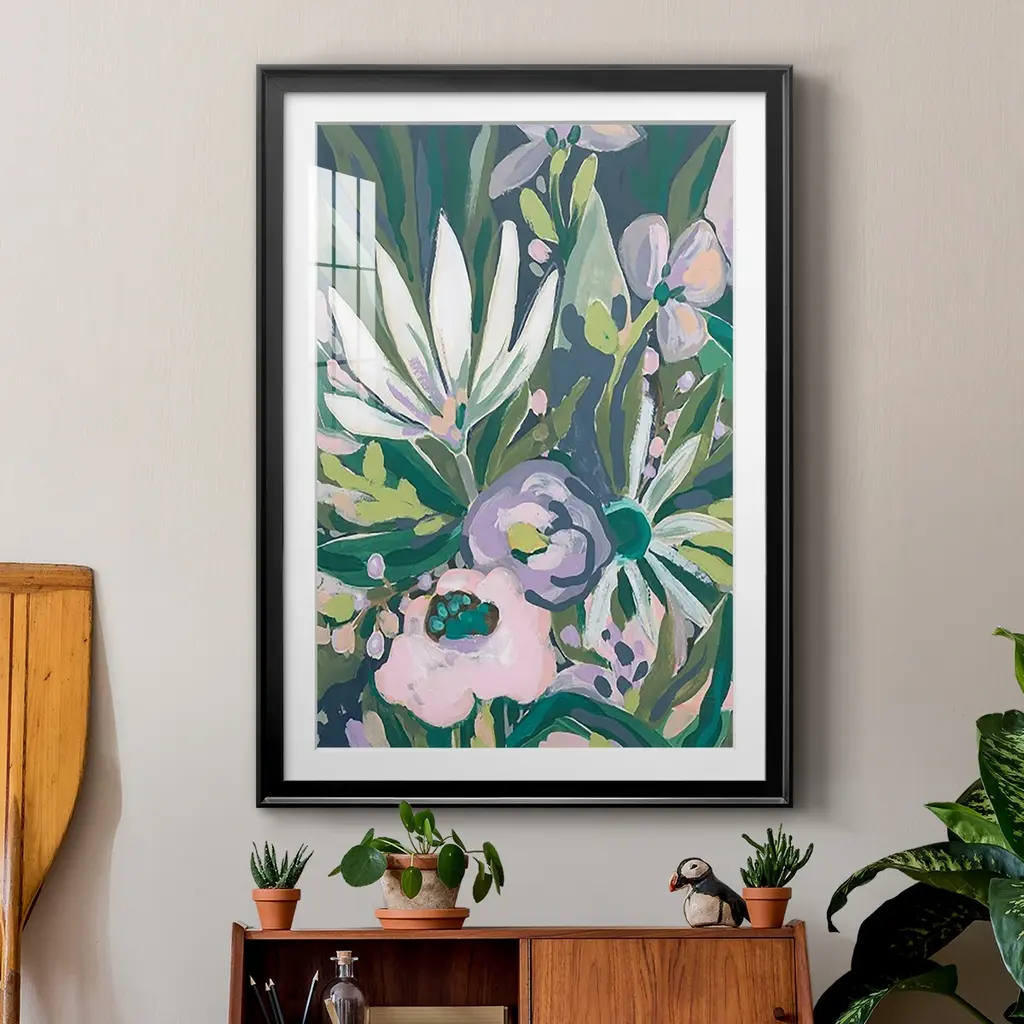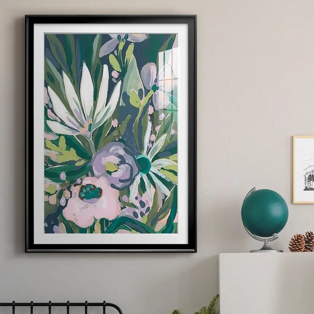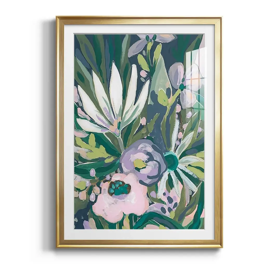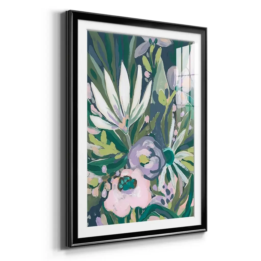 Purple Jungle Garden I Premium Framed Print - Ready to Hang A Premium Framed Print created to last. Framed in distressed wood and available in an array of sizes and colors Featuring a beveled a solid wood stretcher bar, each piece comes ready to hand 4 SIZES AVAILABLE 30.5''X42.5'' - Overall Size 26.5'X36.5'' - Overall Size 22.5''x30.5'' - Overall Size 18.5''x24.5'' - Overall Size Each piece is made to order. Each piece comes with hanging hardware. Made in the USA Ready to Hang Giclee Paper Print Acrylic Glass Beveled Matt Board