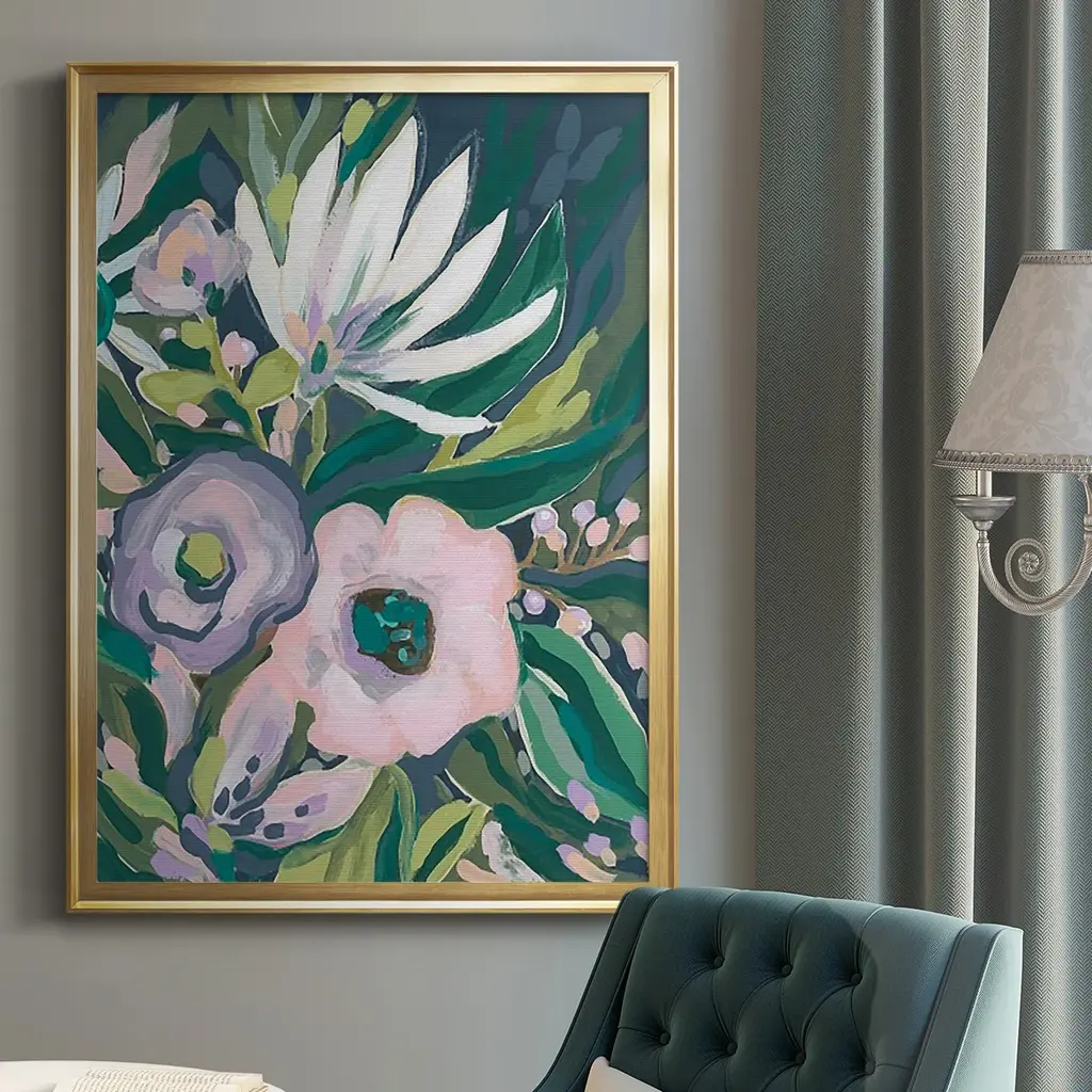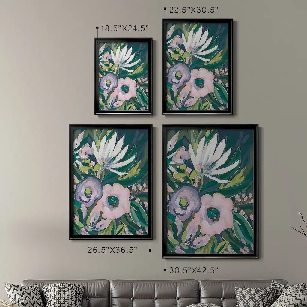 Purple Jungle Garden II Premium Framed Print - Ready to Hang A Premium Framed Print created to last. Framed in distressed wood and available in an array of sizes and colors Featuring a beveled a solid wood stretcher bar, each piece comes ready to hand 4 SIZES AVAILABLE 30.5''X42.5'' - Overall Size 26.5'X36.5'' - Overall Size 22.5''x30.5'' - Overall Size 18.5''x24.5'' - Overall Size Each piece is made to order. Each piece comes with hanging hardware. Made in the USA Ready to Hang