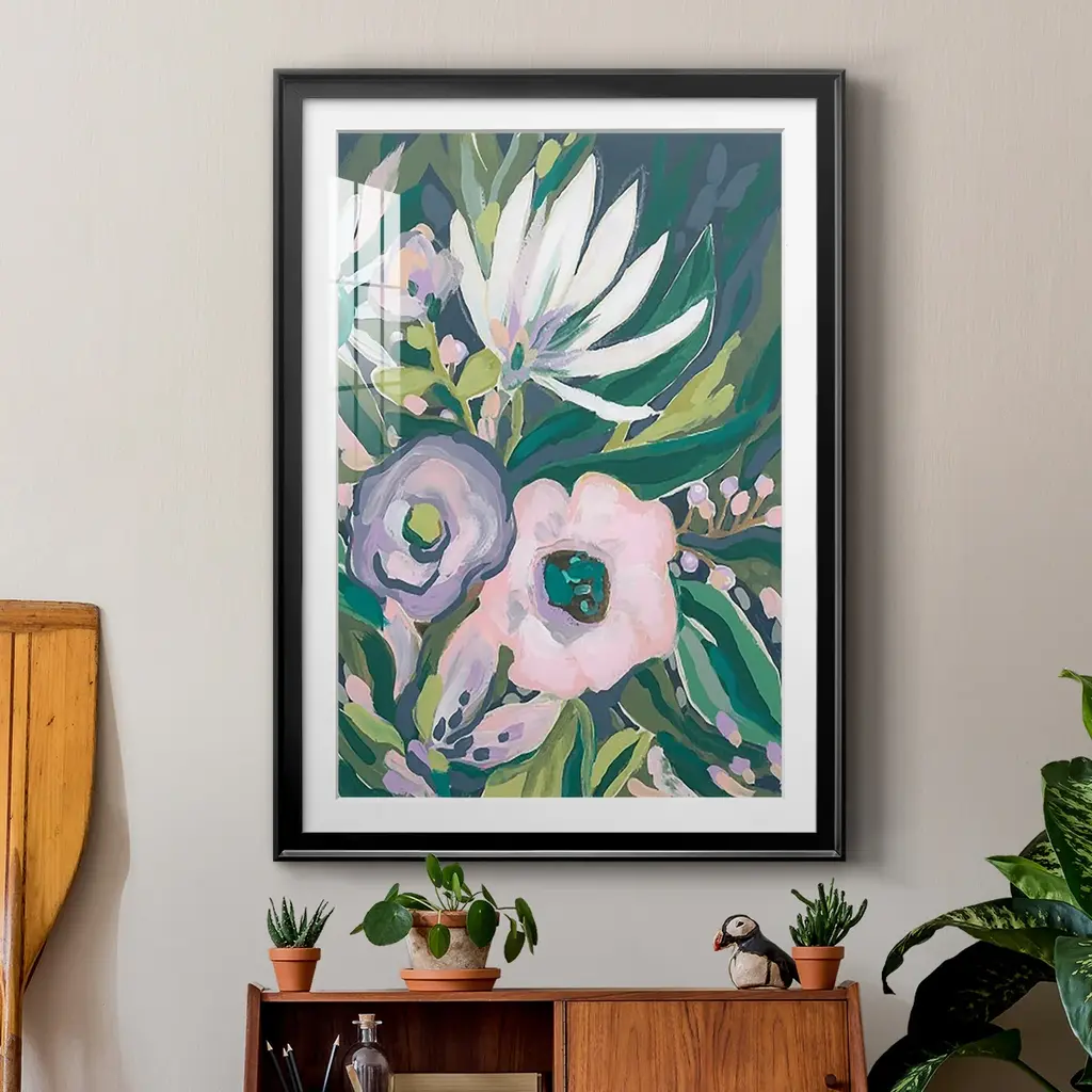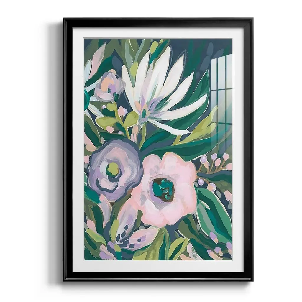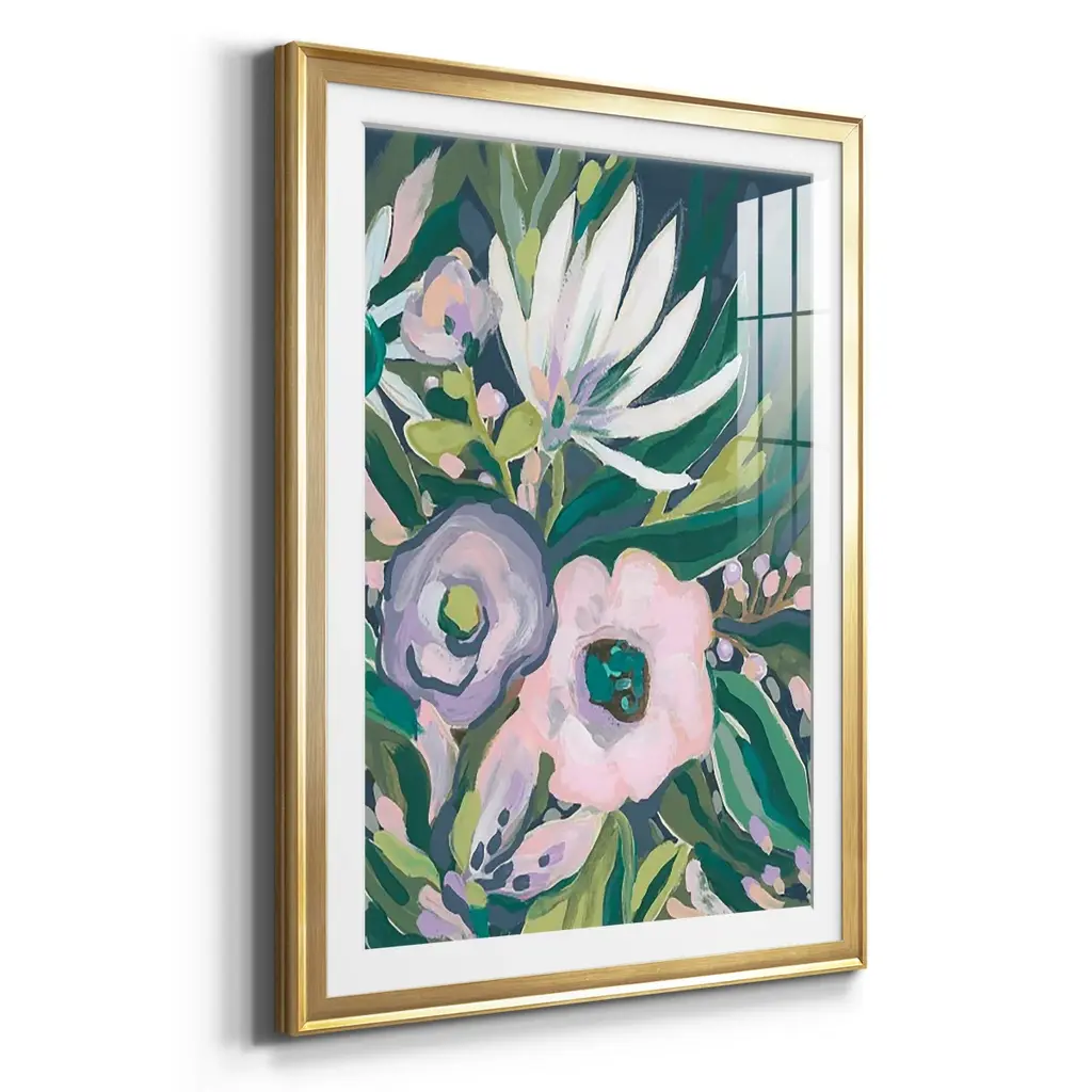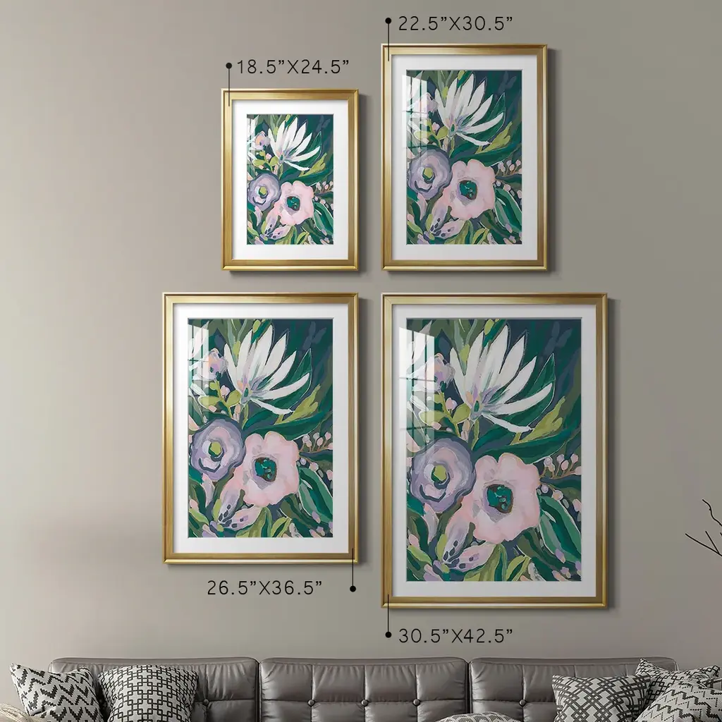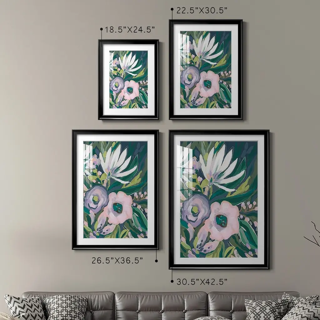 Purple Jungle Garden II Premium Framed Print - Ready to Hang A Premium Framed Print created to last. Framed in distressed wood and available in an array of sizes and colors Featuring a beveled a solid wood stretcher bar, each piece comes ready to hand 4 SIZES AVAILABLE 30.5''X42.5'' - Overall Size 26.5'X36.5'' - Overall Size 22.5''x30.5'' - Overall Size 18.5''x24.5'' - Overall Size Each piece is made to order. Each piece comes with hanging hardware. Made in the USA Ready to Hang Giclee Paper Print Acrylic Glass Beveled Matt Board