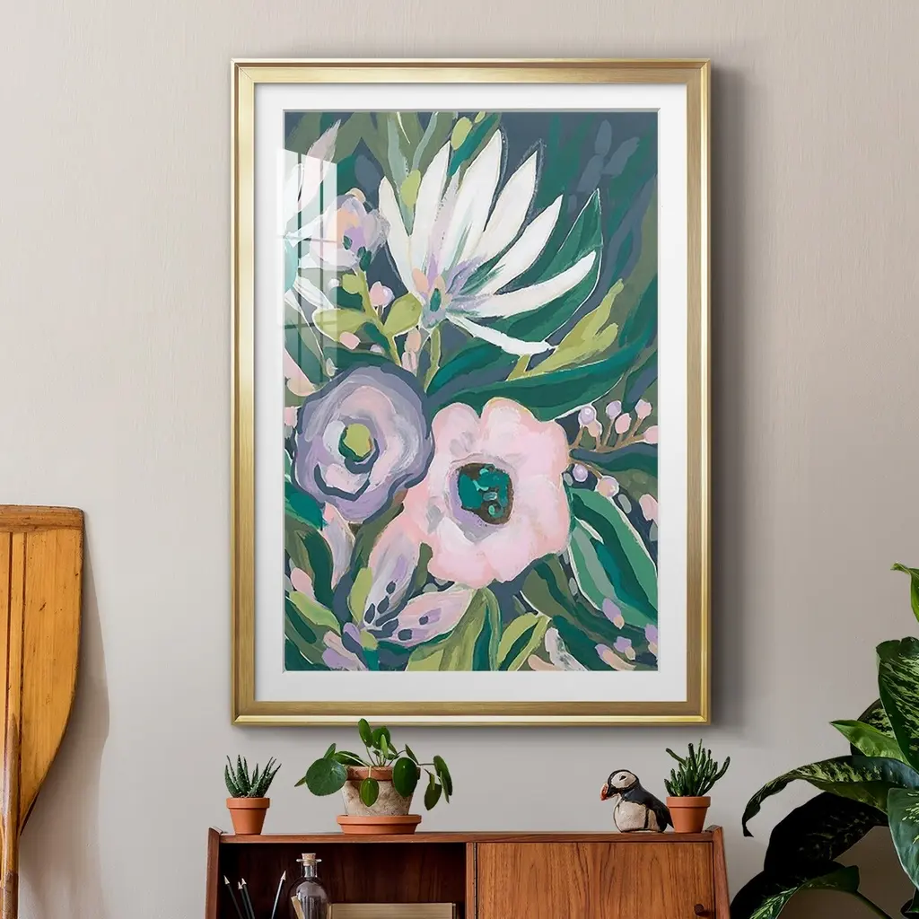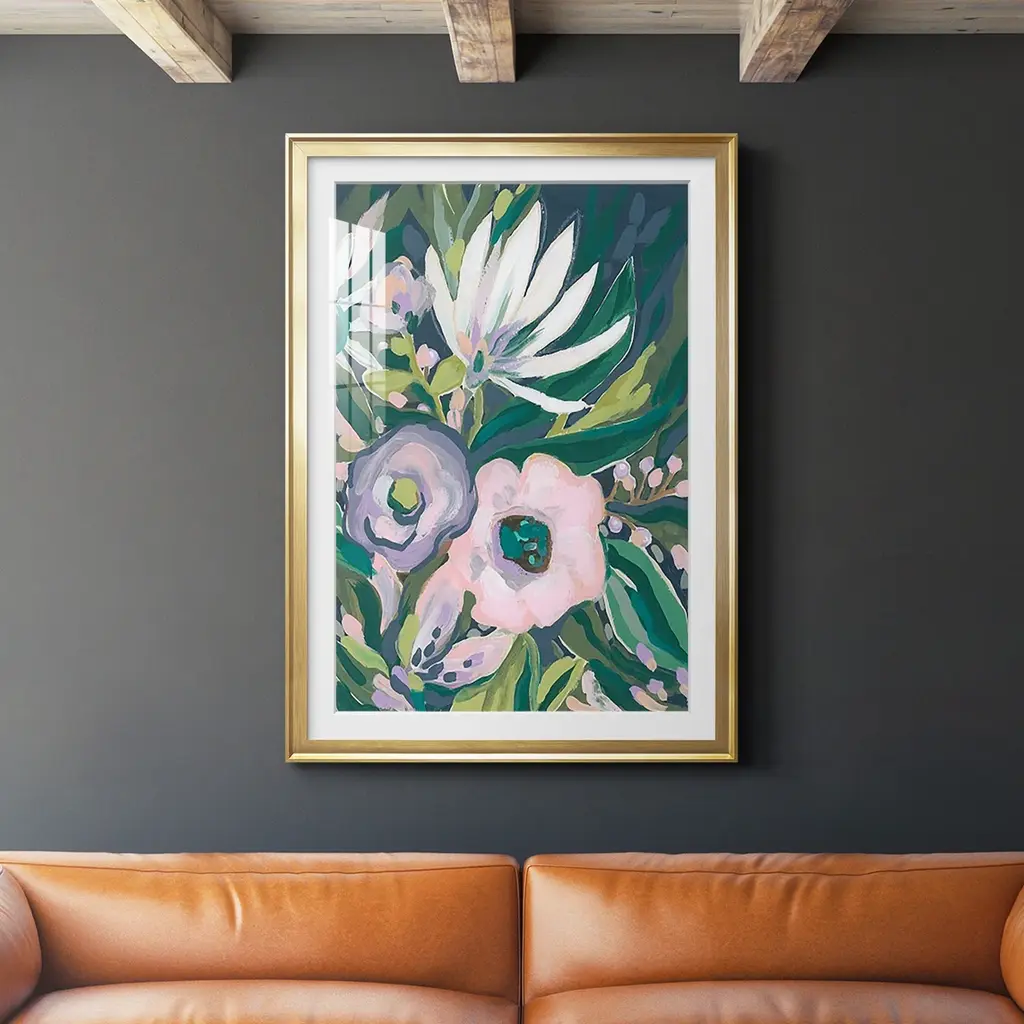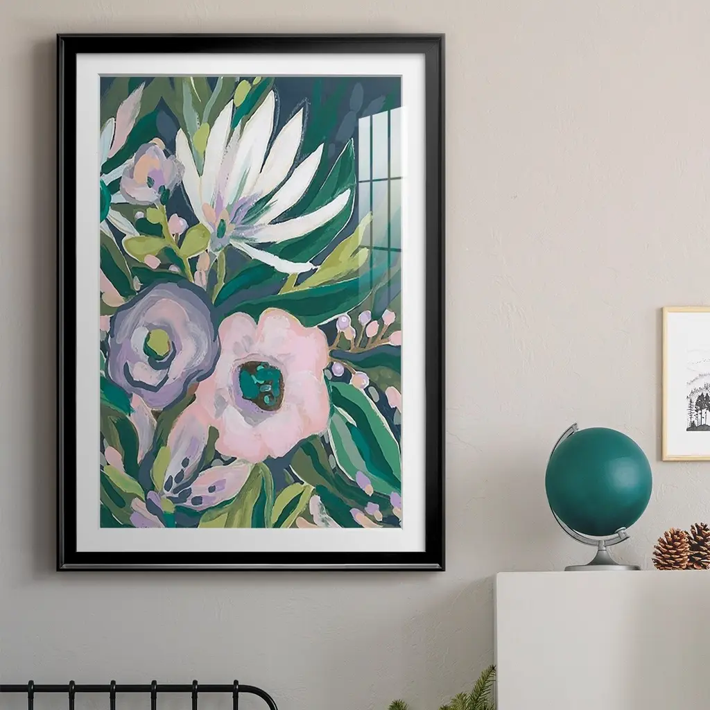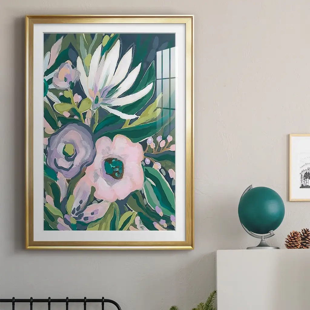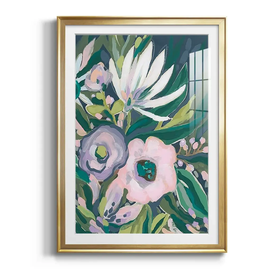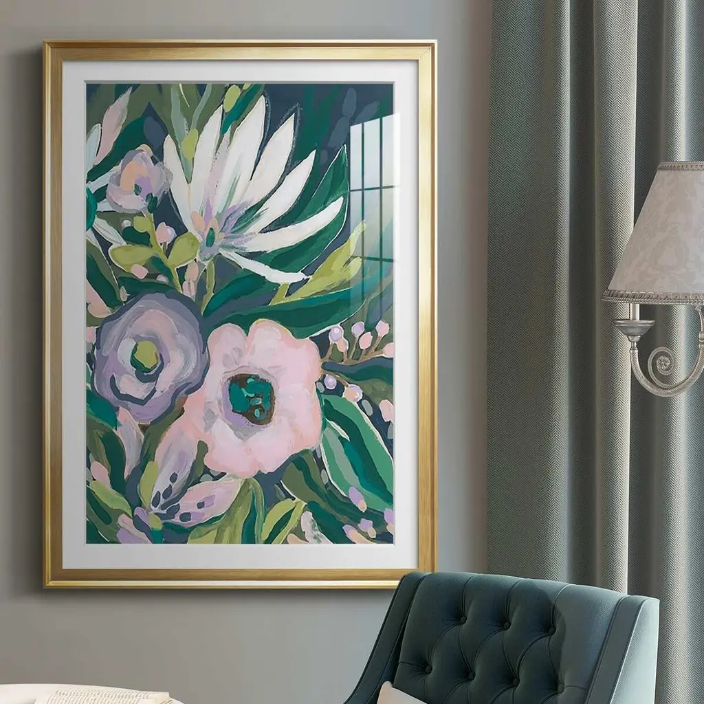 Purple Jungle Garden II Premium Framed Print - Ready to Hang A Premium Framed Print created to last. Framed in distressed wood and available in an array of sizes and colors Featuring a beveled a solid wood stretcher bar, each piece comes ready to hand 4 SIZES AVAILABLE 30.5''X42.5'' - Overall Size 26.5'X36.5'' - Overall Size 22.5''x30.5'' - Overall Size 18.5''x24.5'' - Overall Size Each piece is made to order. Each piece comes with hanging hardware. Made in the USA Ready to Hang Giclee Paper Print Acrylic Glass Beveled Matt Board