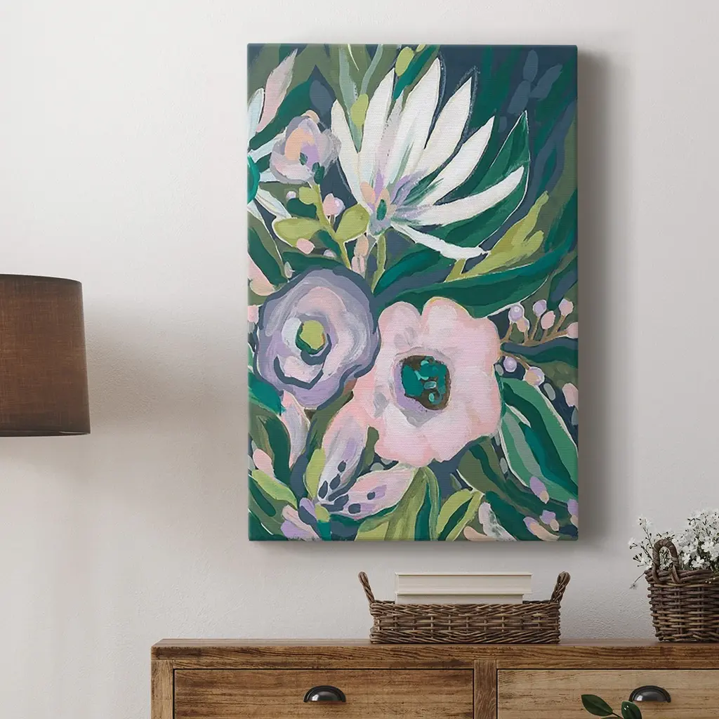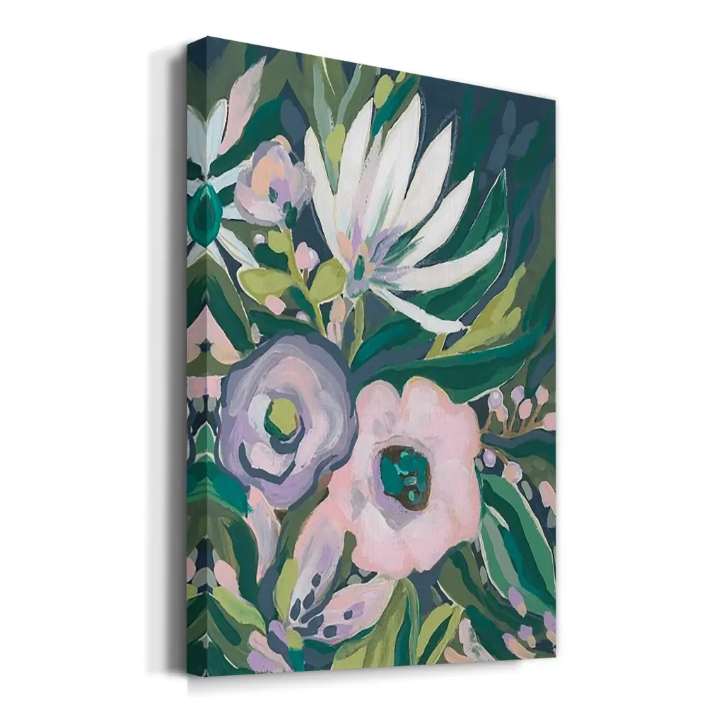Purple Jungle Garden II Premium Gallery Wrapped Canvas - Ready to Hang A premium hand stretched gallery wrapped canvas print created to last. Featuring a beveled a solid wood stretcher bar, each piece comes ready to hand 6 SIZES AVAILABLE 8''X12'' - Overall Size 12''X18'' - Overall Size 18''X27'' - Overall Size 24''x36'' - Overall Size 32''x48'' - Overall Size 40''x60'' - Overall Size Each piece is made to order. Built to Last Each piece comes ready to hang Solid wood stretcher Fade and Water resistant Made domestically