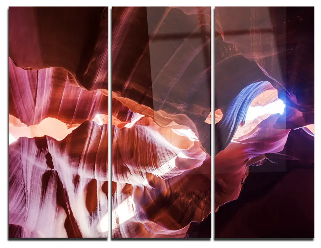 "Purple Rays In Antelope Canyon" Photo Metal Wall Art, 3 Panels, 36"x28"