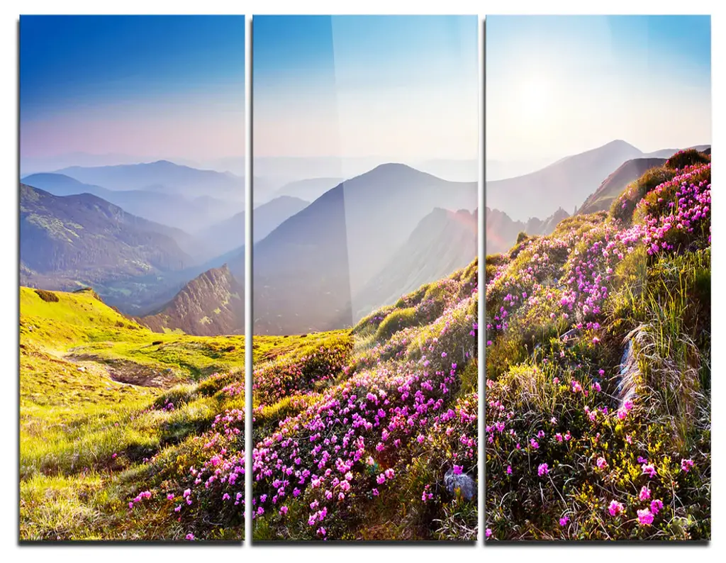 "Purple Sky And Green Mountains" Photo Metal Wall Art, 3 Panels, 36"x28"