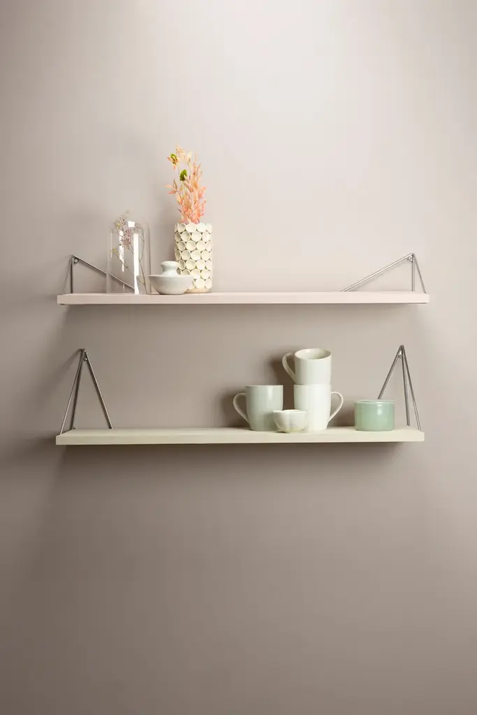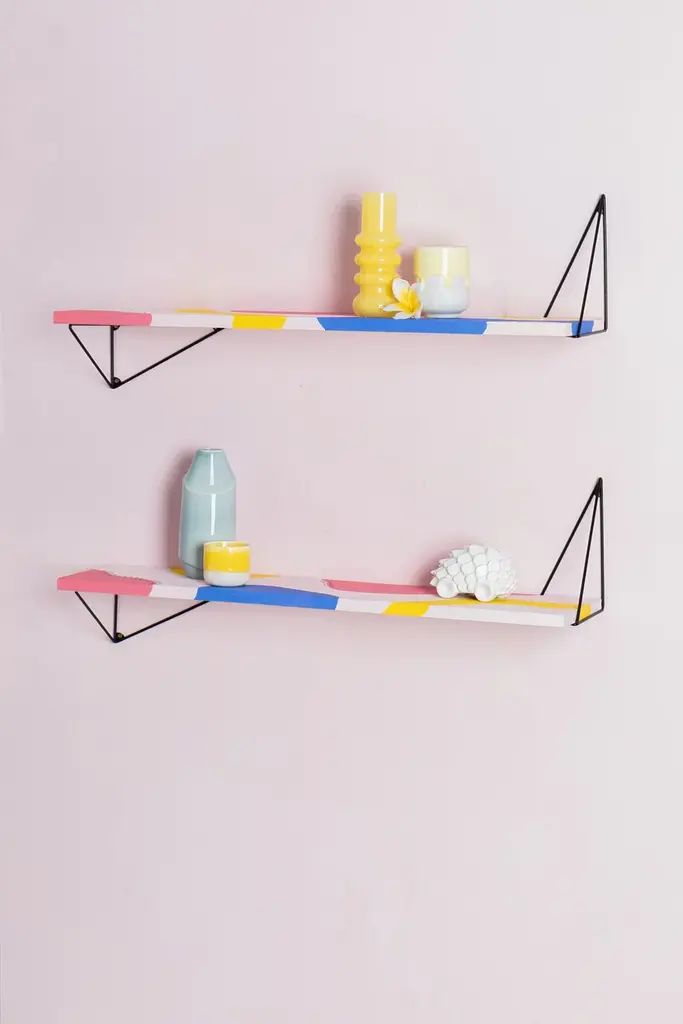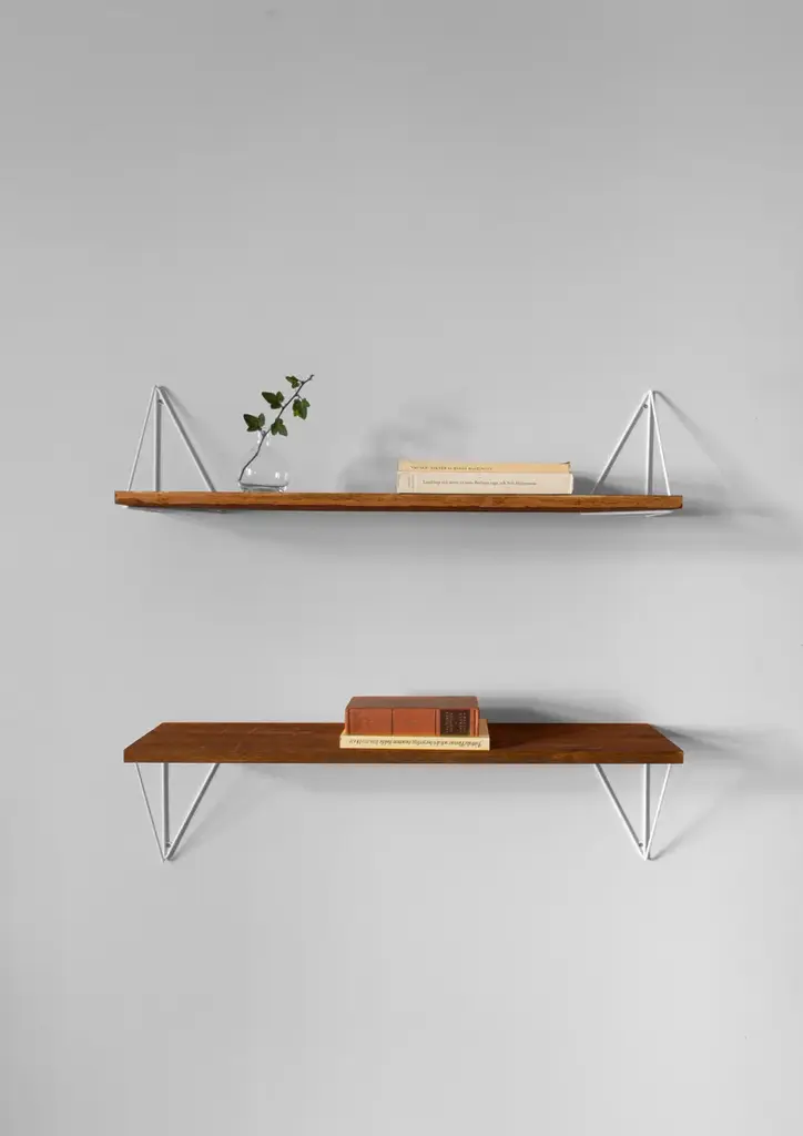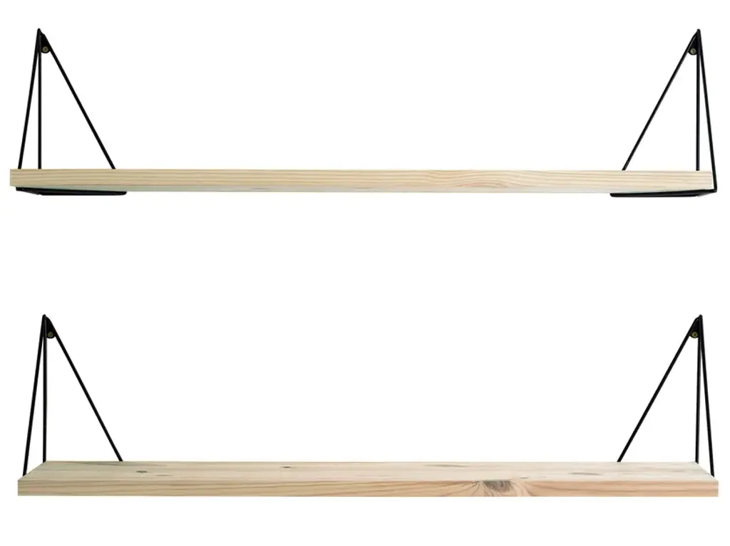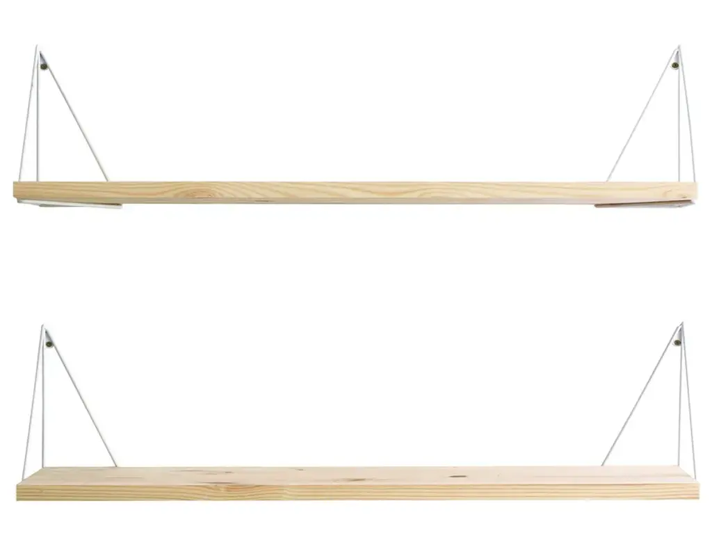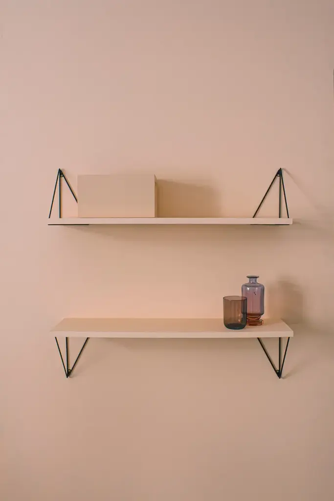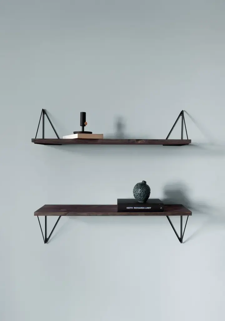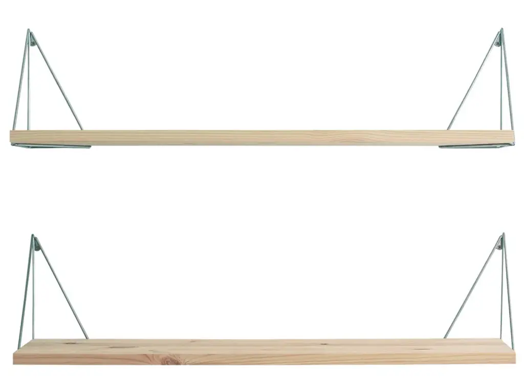 Pythagoras Play is characterized by 4 Pythagoras brackets and 2 pinewood shelves made for your creativity. Pythagoras Play is a part of the Pythagoras shelving system . Play allows you to be as creative as you wish - by painting or just simply make you own personalized shelf!The shelf has three pre-drilled holes adapted for the Pythagoras Brackets, to anchor the shelf to them and to adjust what size you want on your shelf. Play comes in a set of two shelfs and four brackets.Colors: pine/white, pine/black, pine/brass, pine/chromeThe Pythagoras bracket system is a complete extension from the Pythagorean equation; if two sides of a right-angled triangle are known, the length of the third can be revealed.This collection is produced in Småland and the Pythagoras brackets are made of 100% recycled metal. The Pythagoras PLAY shelves are made from Nordic sustainable forestry – for every tree used, two new trees are planted.