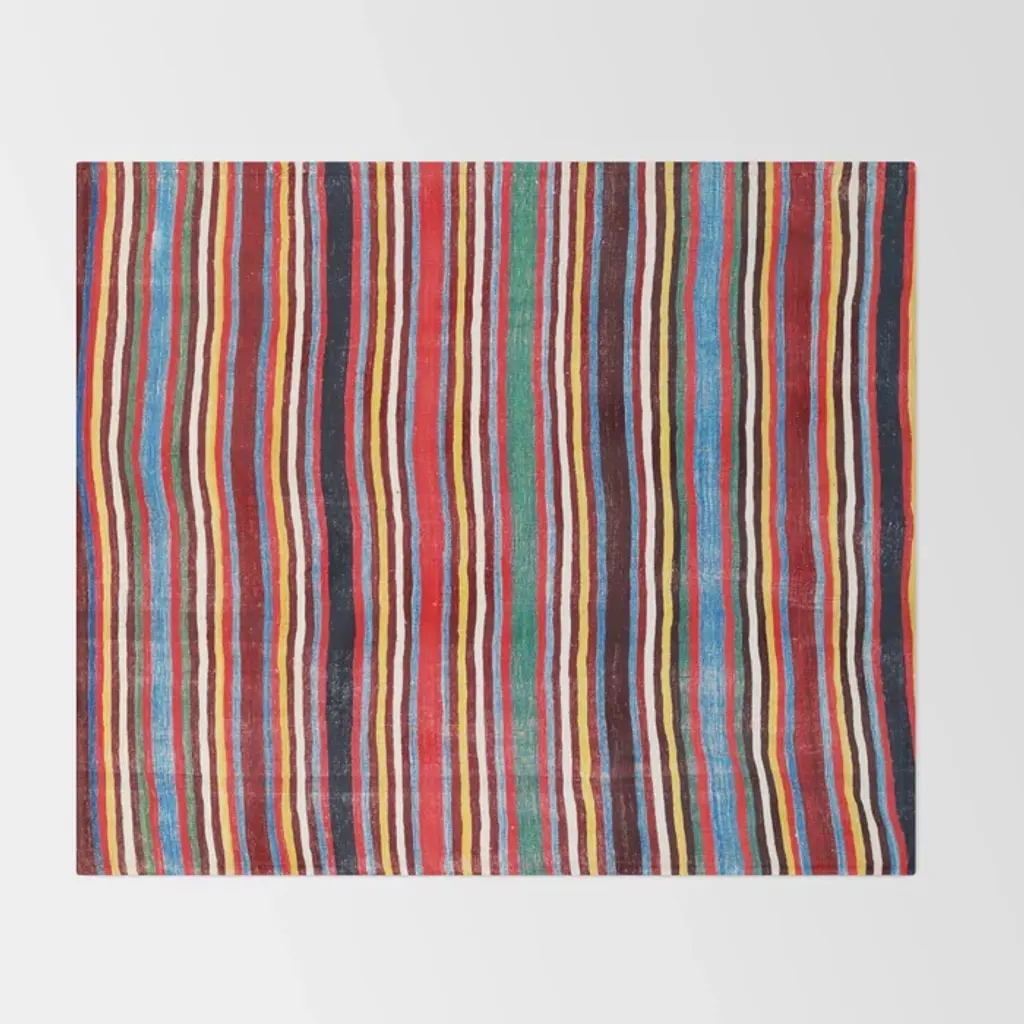 Qashqa’i Antique Fars Southwest Persian Striped Kilim Print Throw Blanket