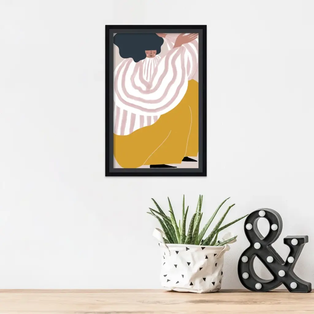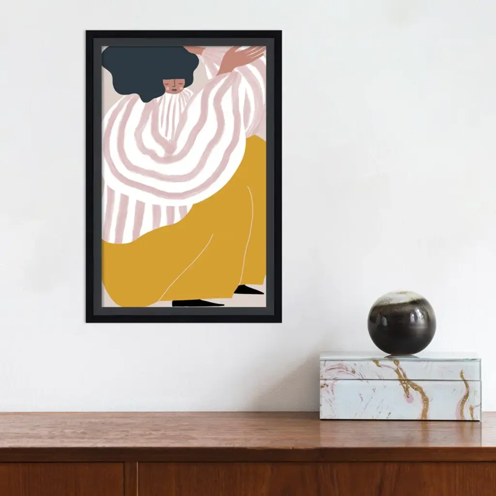 Meet your wall's new best friend: a captivating print that captures the human spirit. This piece showcases a thought-provoking portrait, framed by a high-quality closed-corner frame. Primarily crafted from paper, it features a woman in a moment of quiet contemplation. The artist's use of warm yellows against soft pinks creates a striking contrast that can't help but draw the eye. It's a singular piece that adds a touch of personality and depth to any room. Plus, it's machine-made for precision and quality you can trust.