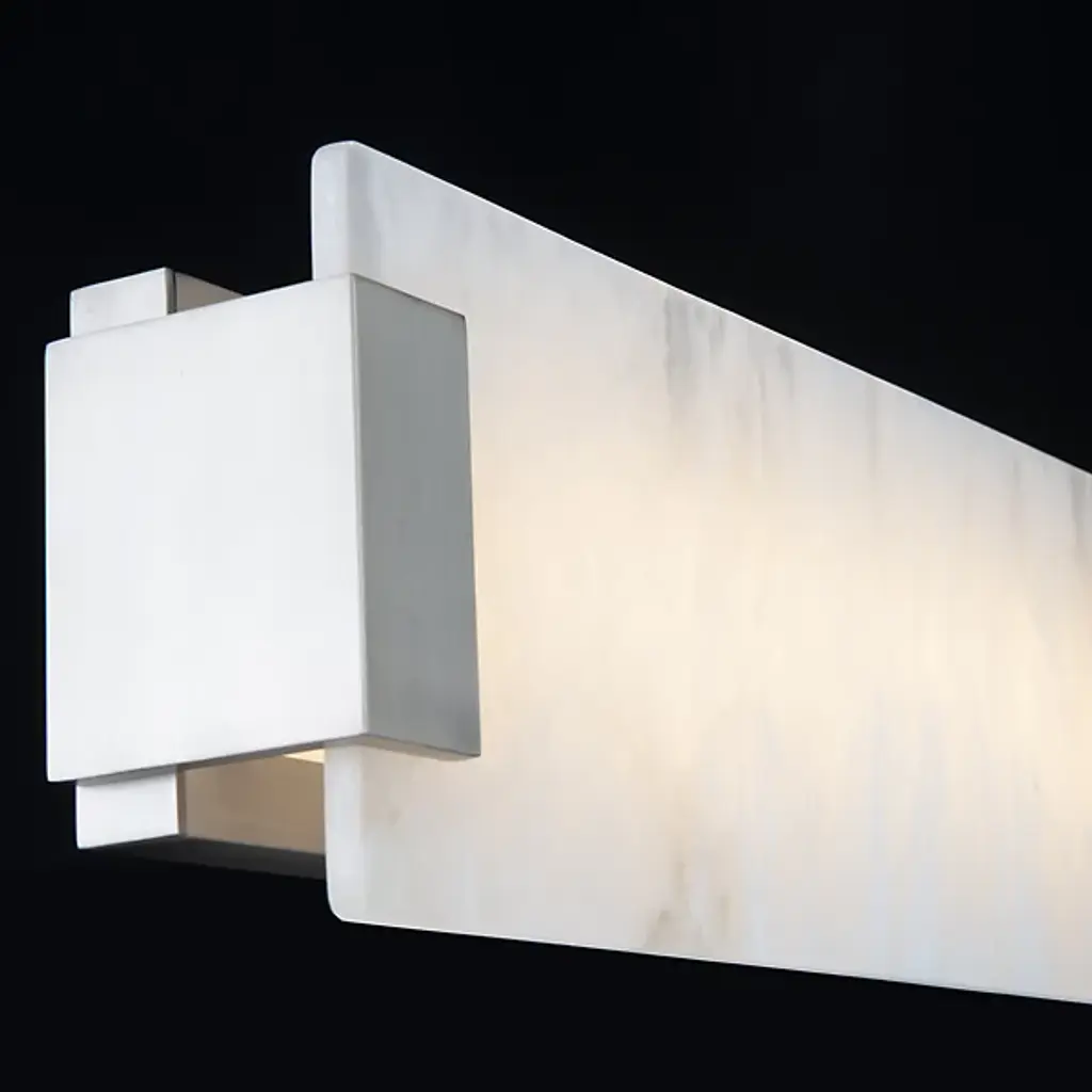 Precious Spanish alabaster creates a beautiful painting of illuminated gestural contours in the Quarry LED Alabaster Vanity Light & Wall Light from Modern Forms. It accentuates your bathroom mirror's geometry with a sleek metal frame that shows with two short rectangular stops. A milky alabaster canvas sits inside the elegant metal frame, bursting with organic details. The fine shifts of the alabaster's opacity are beautifully emphasized as a radiant glow shines through its sophisticated surface.