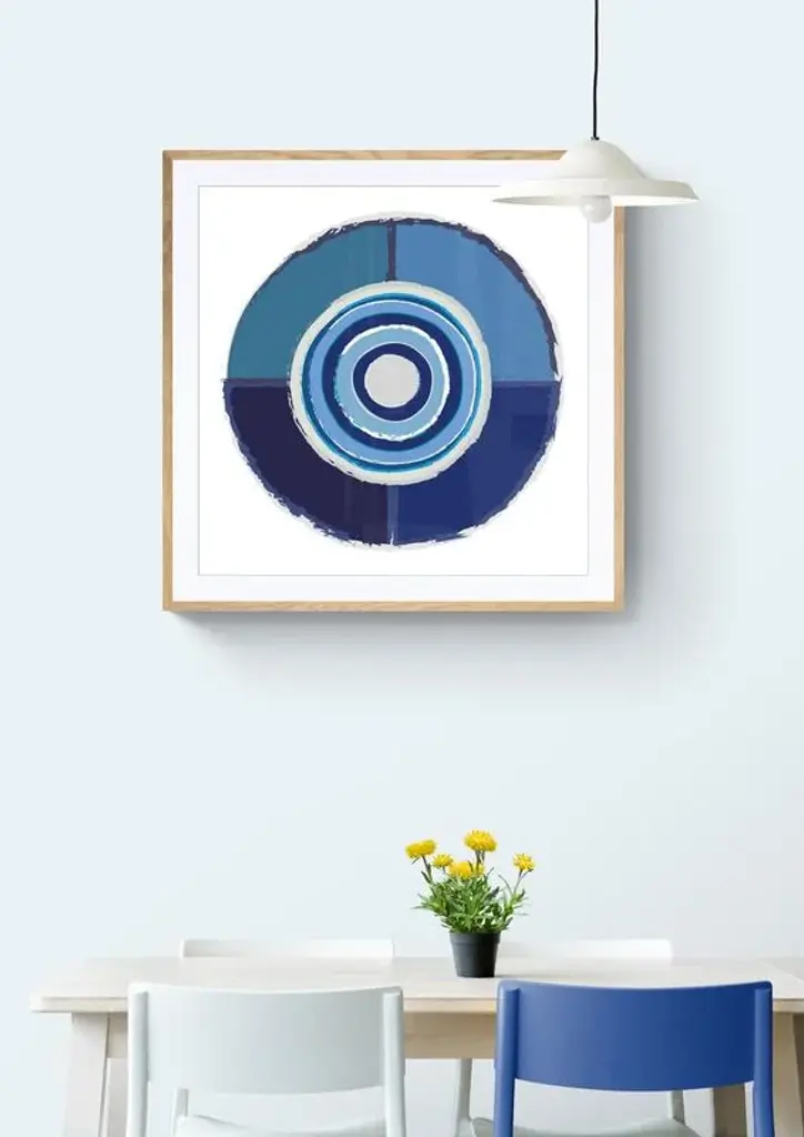 This colorful, mid century inspired fine art print is digitally printed on premium white matte paper. While sold individually, coordinating prints by Melinda Cox, Creative Director of Balanced Design Studio, are available in additional colorways to combine as pairs or groupings of bold color. The print "Circles in Navy and Blues" was designed as a companion to this piece. Using the highest quality printing available, these prints have superb color saturation. Made to order, the prints are shipped unframed in a tube and are available in four sizes. Each print is hand signed by Melinda Cox. About the artist: Melinda Cox is the Creative Director of Balanced Design: Modern Patterns / Traditional Craftsmanship/ Made in the USA fabrics, rugs and fine art prints. An artist at the intersection of minimalism and graphic pattern, her work can be seen in both commercial projects and private residences throughout the USA and has appeared in numerous national and international publications. Her fine art prints are represented by Candita Clayton Gallery. Artist Statement: I see the world in simple shapes and powerful colors. I see patterns. Whether as a print designer, a graphic designer, a textile designer, or a rug designer, I take a minimalist approach to using color, shape and form. My work has been called daring, bold, whimsical and happy, and is inspired by any simple shape, like a bird’s foot imprinted in the sand.