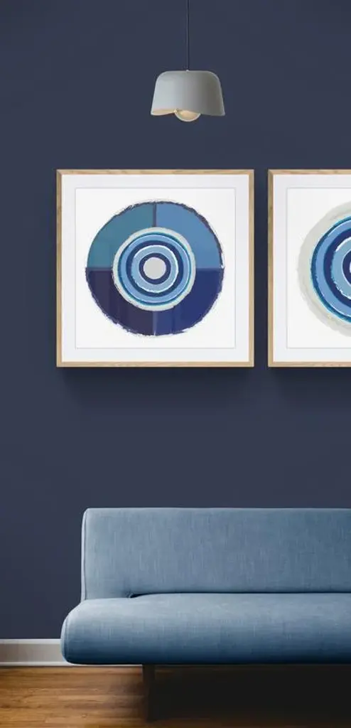 "Quartet In Navy And Blues" Contemporary Geometric Print By Melinda Cox 24" X 24"