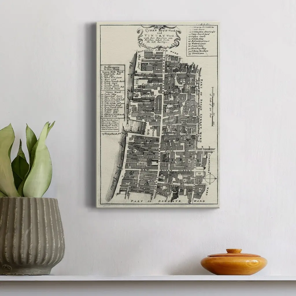 Quays of London IV Premium Gallery Wrapped Canvas - Ready to Hang A premium hand stretched gallery wrapped canvas print created to last. Featuring a beveled a solid wood stretcher bar, each piece comes ready to hand 6 SIZES AVAILABLE 8''X12'' - Overall Size 12''X18'' - Overall Size 18''X27'' - Overall Size 24''x36'' - Overall Size 32''x48'' - Overall Size 40''x60'' - Overall Size Each piece is made to order. Built to Last Each piece comes ready to hang Solid wood stretcher Fade and Water resistant Made domestically