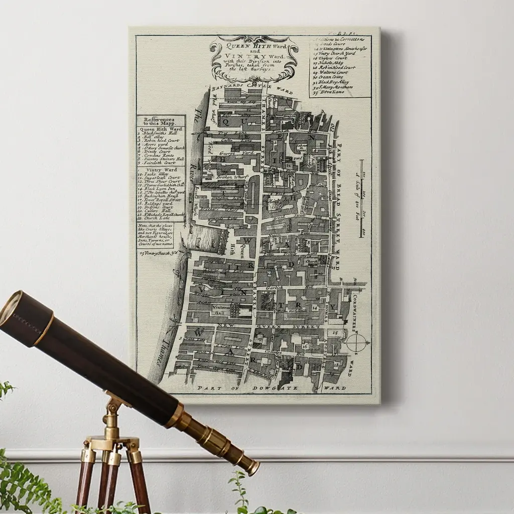 Quays of London IV Premium Gallery Wrapped Canvas - Ready to Hang A premium hand stretched gallery wrapped canvas print created to last. Featuring a beveled a solid wood stretcher bar, each piece comes ready to hand 6 SIZES AVAILABLE 8''X12'' - Overall Size 12''X18'' - Overall Size 18''X27'' - Overall Size 24''x36'' - Overall Size 32''x48'' - Overall Size 40''x60'' - Overall Size Each piece is made to order. Built to Last Each piece comes ready to hang Solid wood stretcher Fade and Water resistant Made domestically