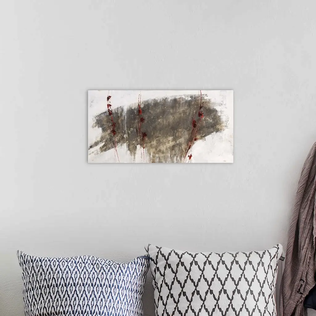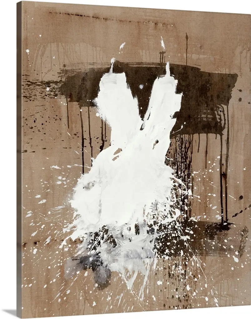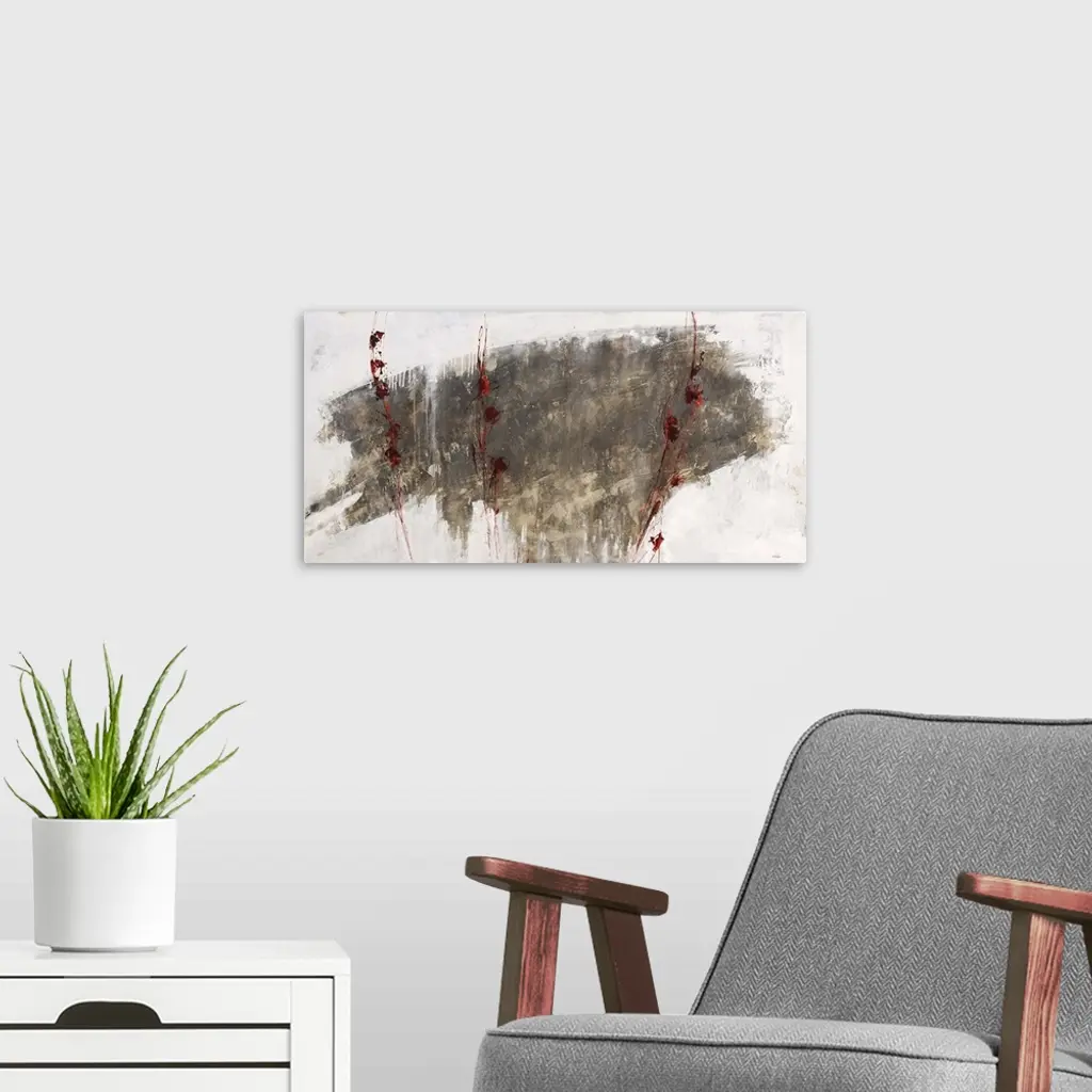 Abstract artwork in neutral earth tones with a dark cloud of brown over white.