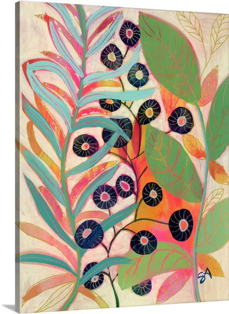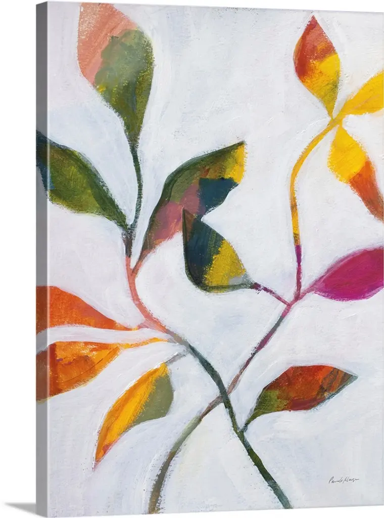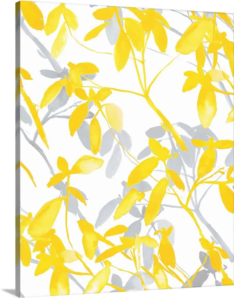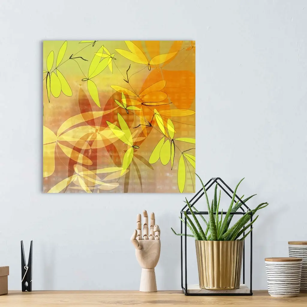 This decorative accent for the home in an abstract square composition created by layering slender, transparent leaf shapes across the artwork.