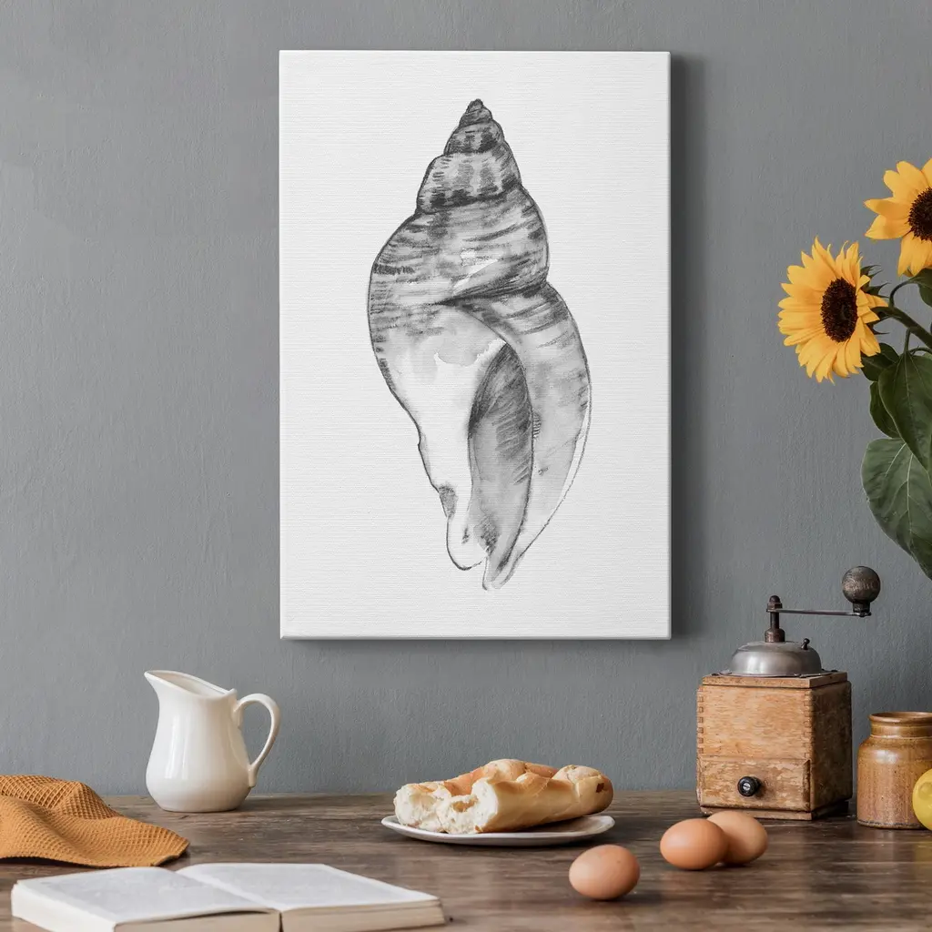 Quiet Conch I Premium Gallery Wrapped Canvas - Ready to Hang A premium hand stretched gallery wrapped canvas print created to last. Featuring a beveled a solid wood stretcher bar, each piece comes ready to hand 5 SIZES AVAILABLE 8''X12'' - Overall Size 16'X20'' - Overall Size 24''x32'' - Overall Size 30''x40'' - Overall Size 36''x48'' - Overall Size Each piece is made to order. Built to Last Each piece comes ready to hang Solid wood stretcher Fade and Water resistant Made domestically
