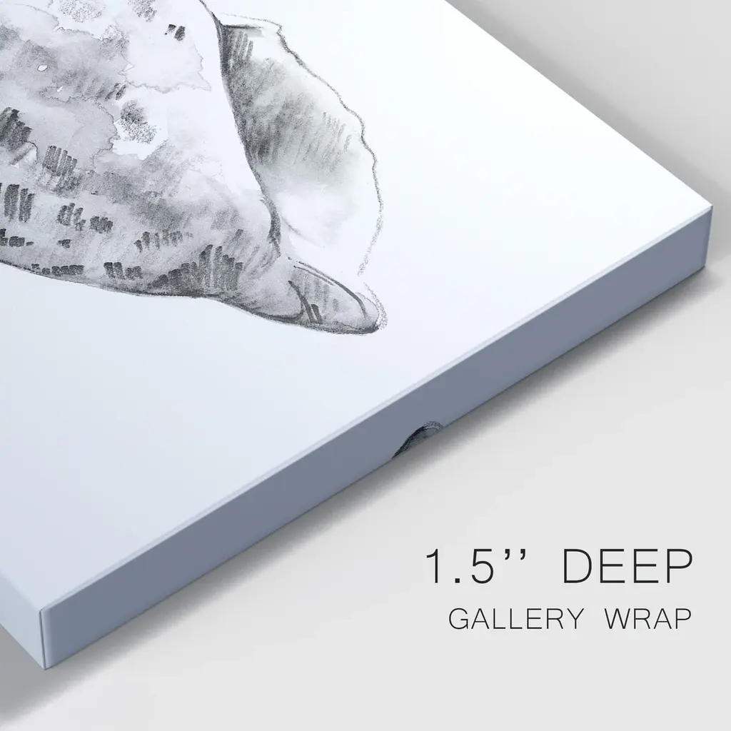 Quiet Conch II Premium Gallery Wrapped Canvas - Ready to Hang A premium hand stretched gallery wrapped canvas print created to last. Featuring a beveled a solid wood stretcher bar, each piece comes ready to hand 5 SIZES AVAILABLE 8''X12'' - Overall Size 16'X20'' - Overall Size 24''x32'' - Overall Size 30''x40'' - Overall Size 36''x48'' - Overall Size Each piece is made to order. Built to Last Each piece comes ready to hang Solid wood stretcher Fade and Water resistant Made domestically