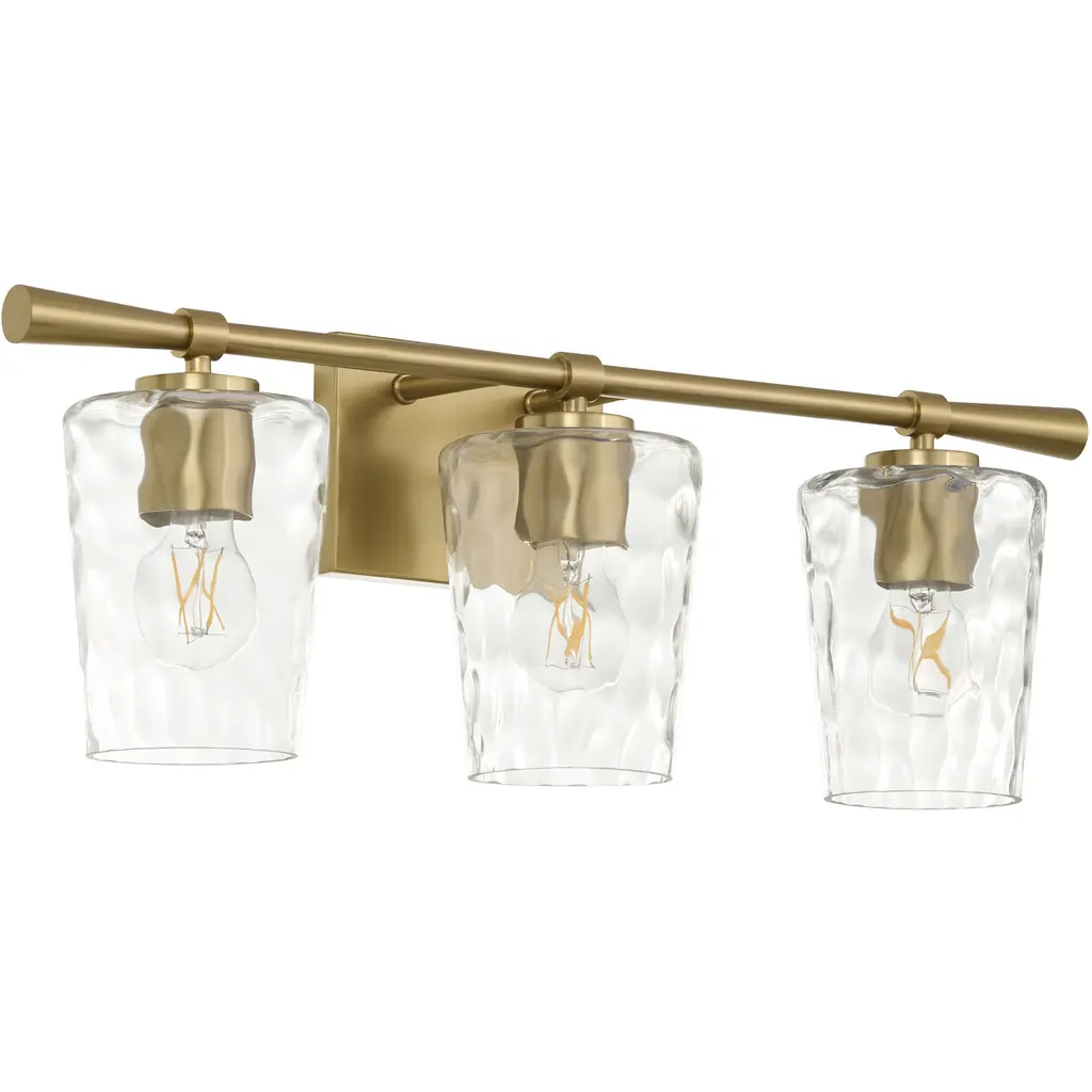 Quorum 517-2-65 2-Light Vanity Light, Satin Nickel. Finish: Satin Nickel. Dimension(in): 8.5(H) x 12.5(W) x 6.25(Ext). Bulb: (2)100W MediumBase(Not Included). Diffuser Material: Glass. Shade Color: Clear Hammered. UL Type: Damp.
