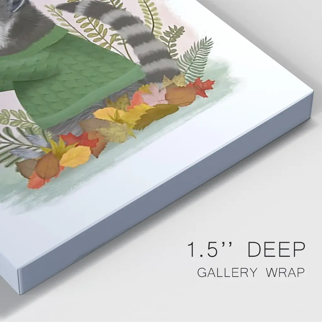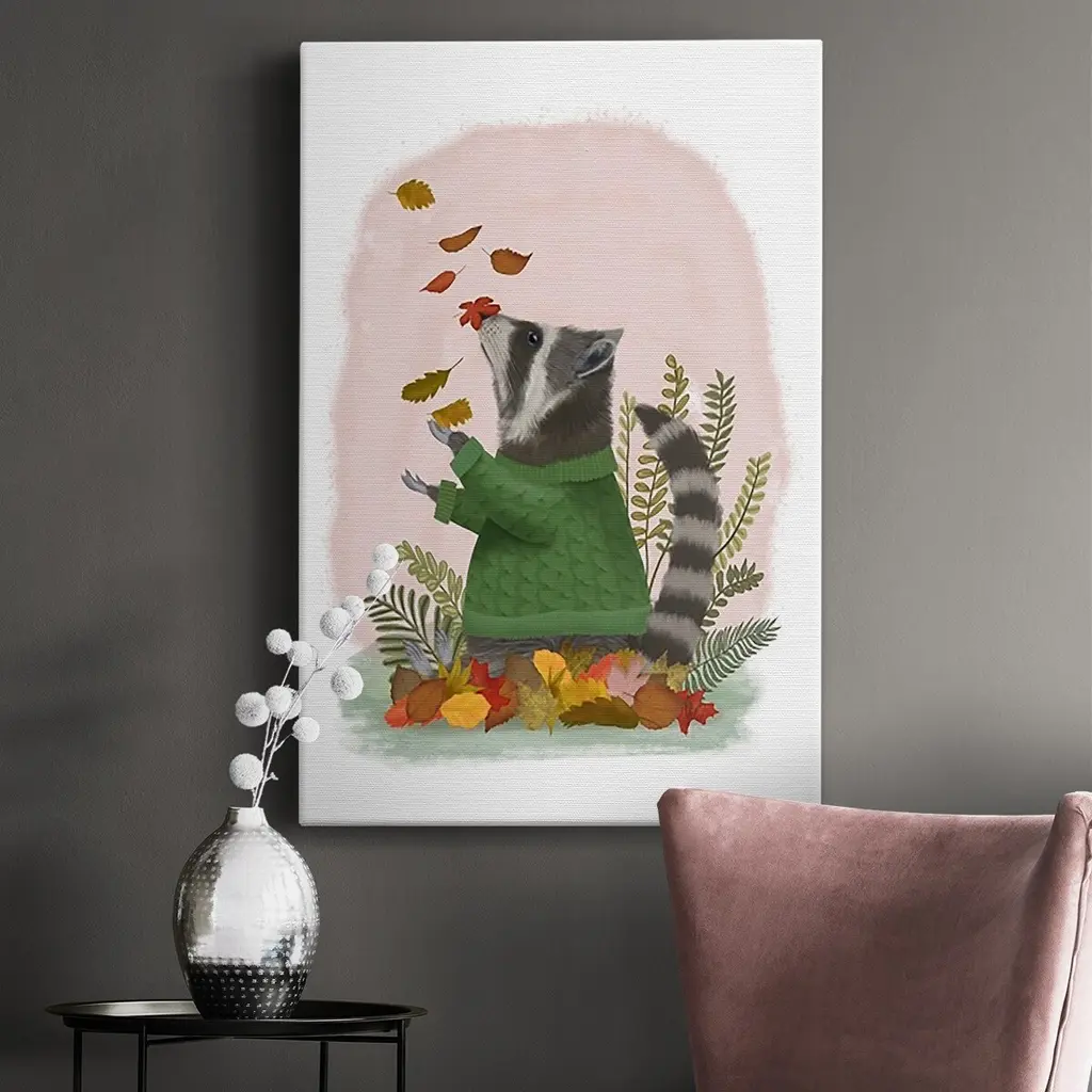Raccoon Catching Leaves Premium Gallery Wrapped Canvas - Ready To Hang - 24x36
