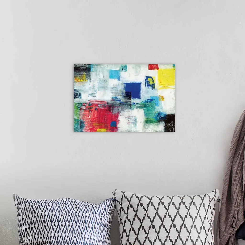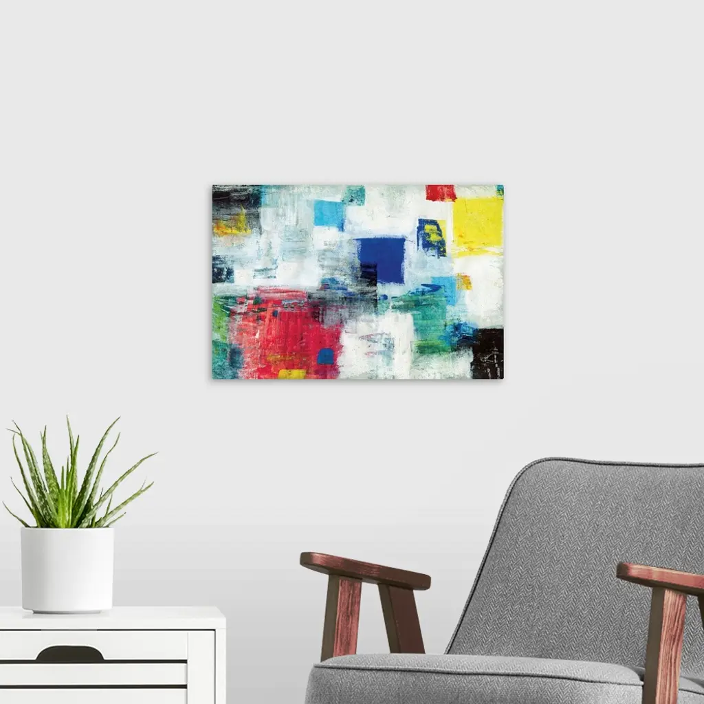 Contemporary abstract artwork in bright primary colors.