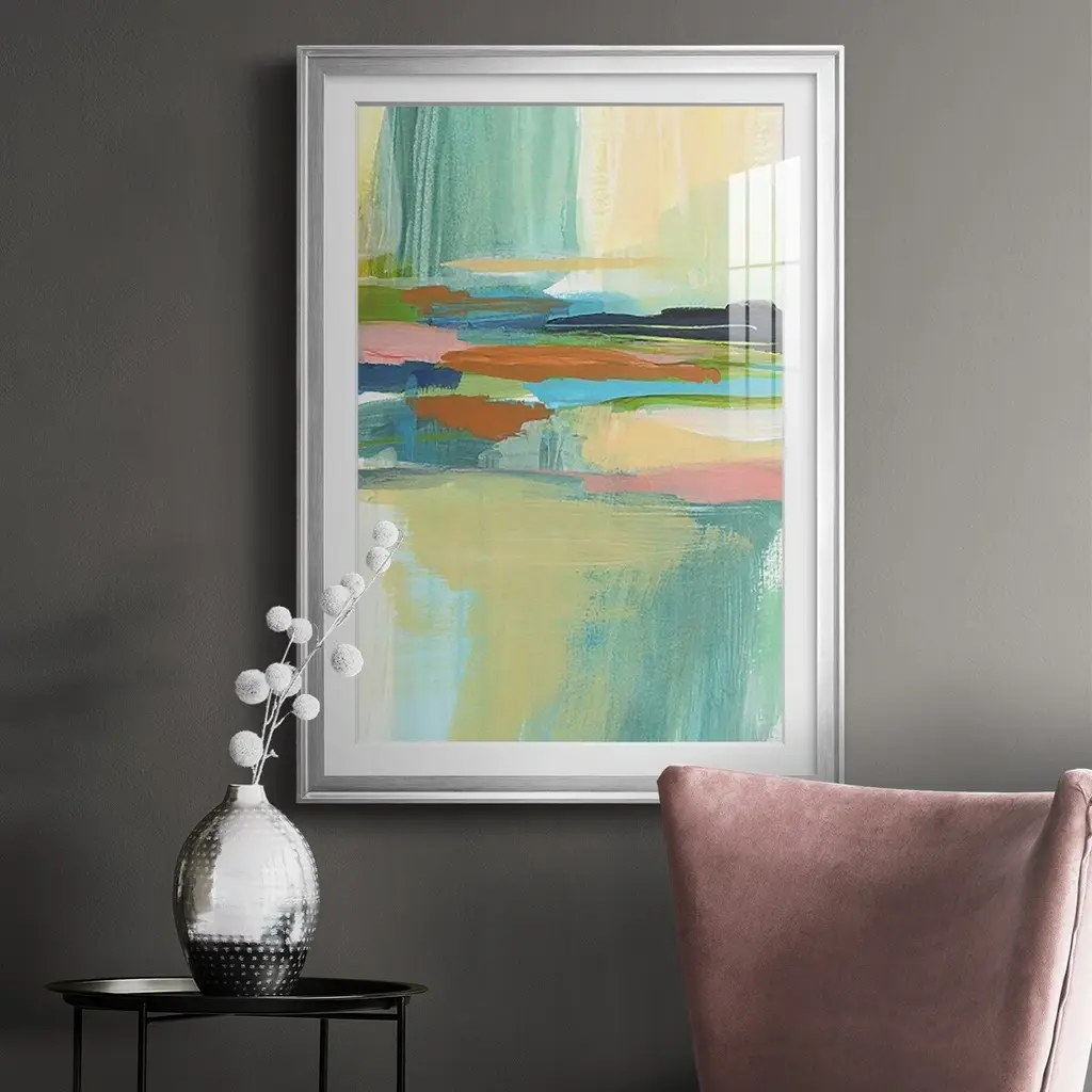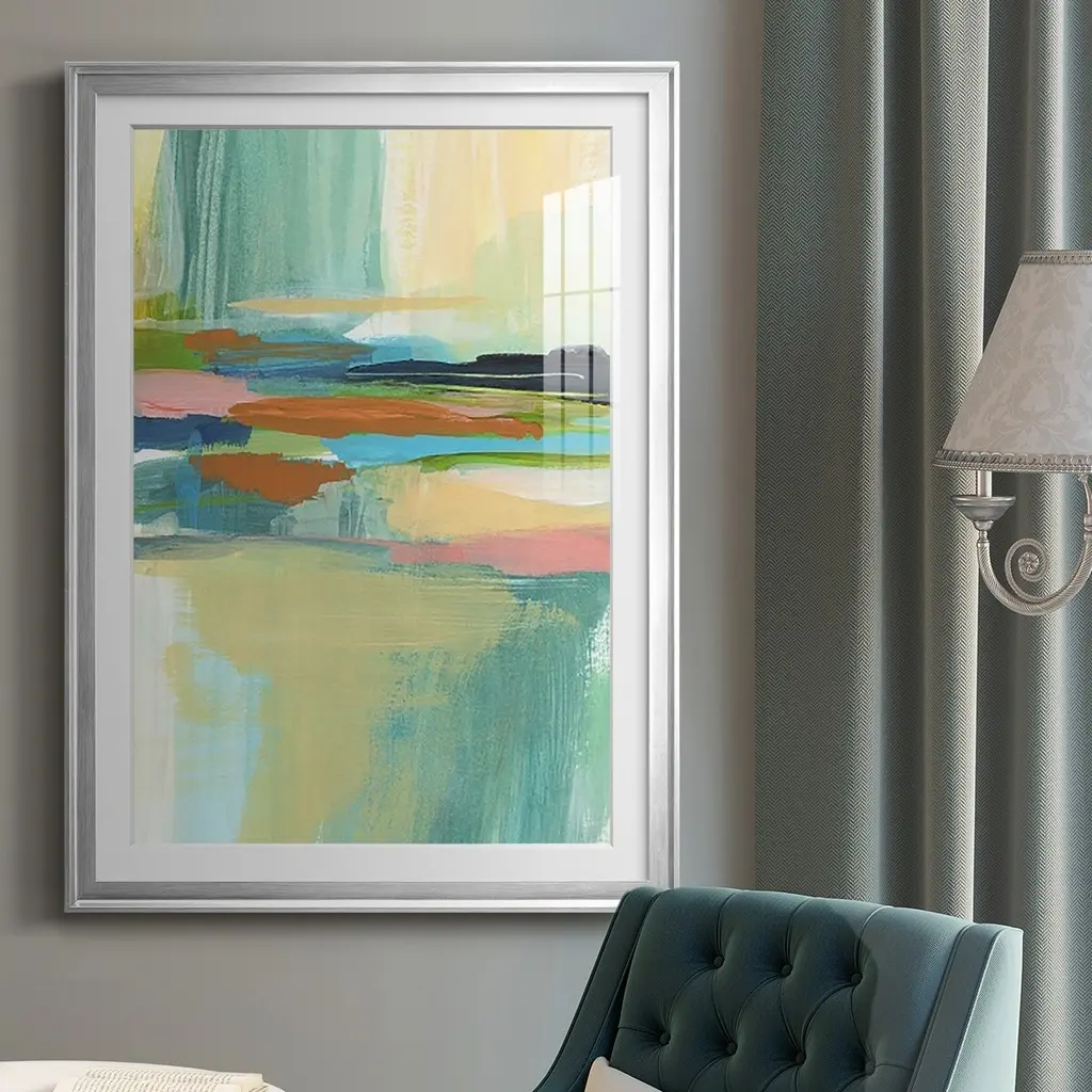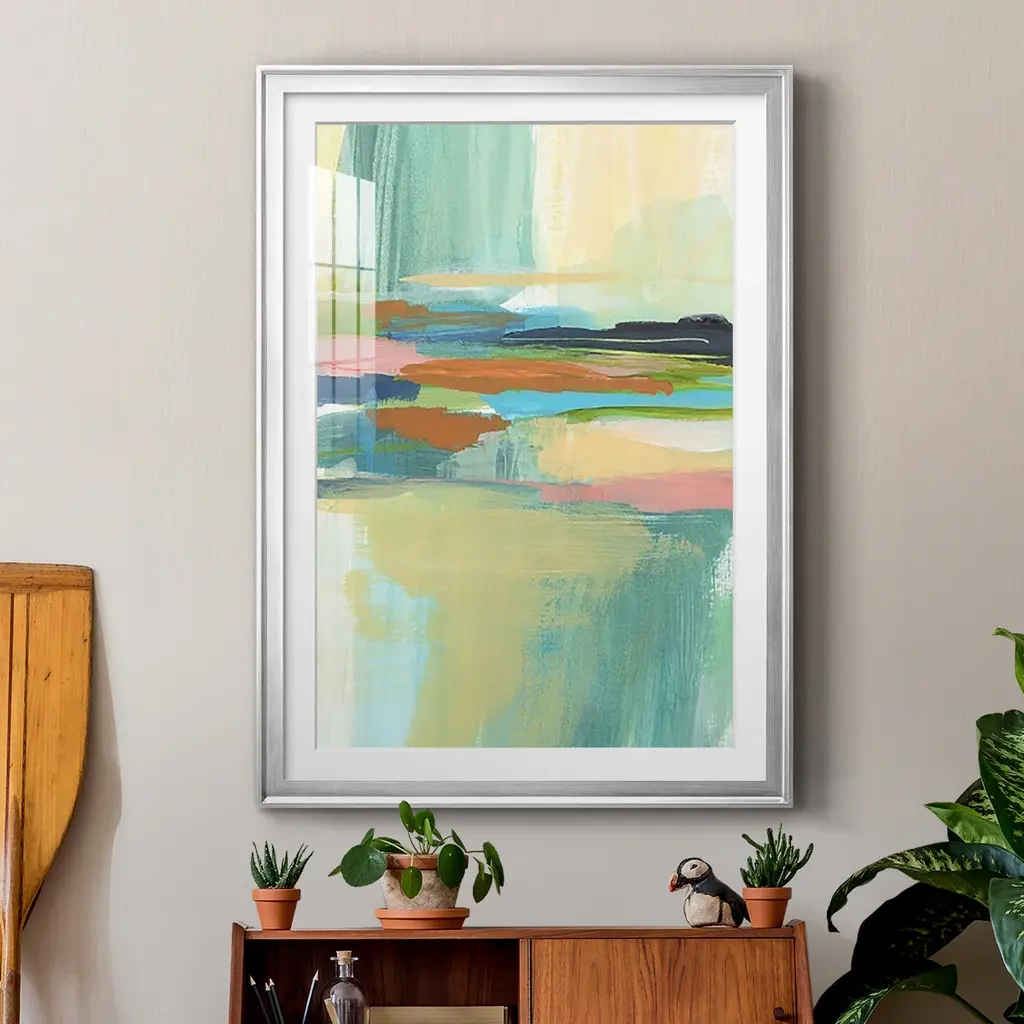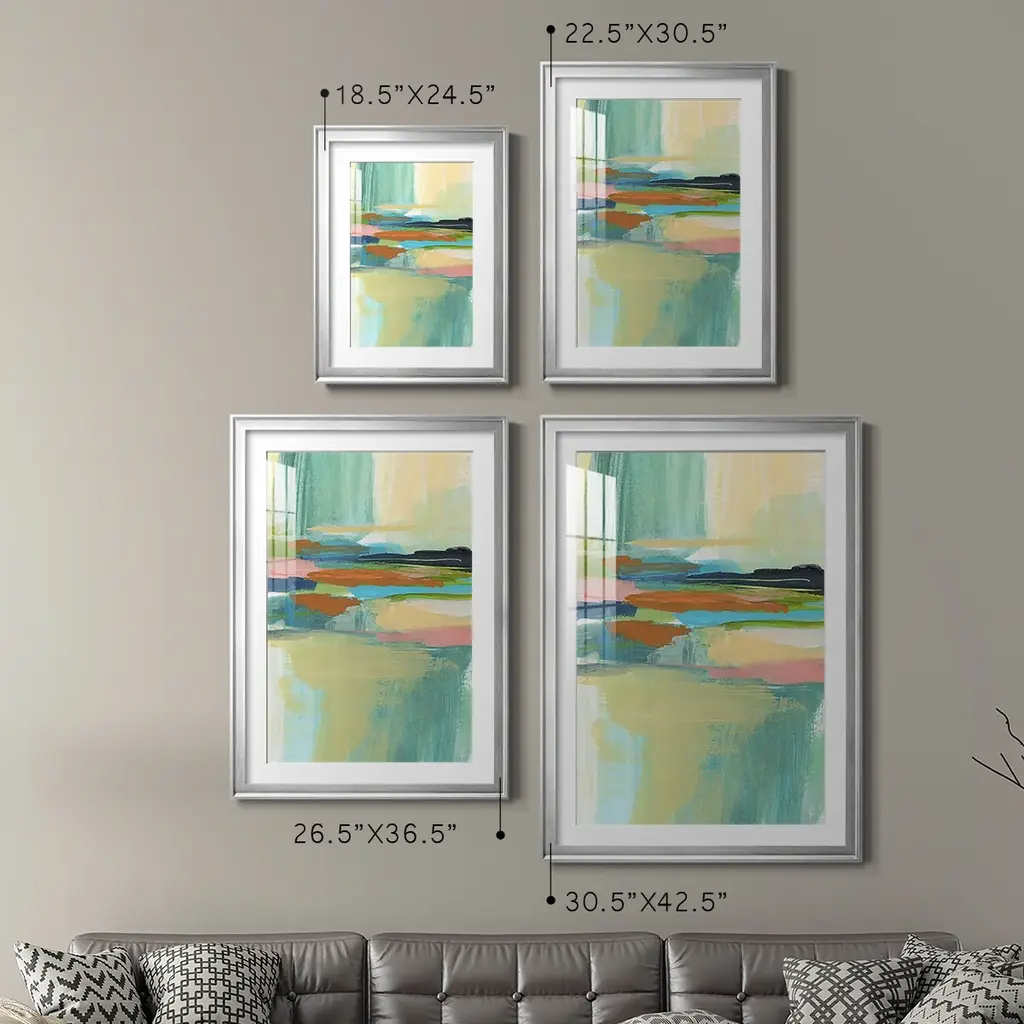 Radiant Horizon I Premium Framed Print - Ready to Hang A Premium Framed Print created to last. Framed in distressed wood and available in an array of sizes and colors Featuring a beveled a solid wood stretcher bar, each piece comes ready to hand 4 SIZES AVAILABLE 30.5''X42.5'' - Overall Size 26.5'X36.5'' - Overall Size 22.5''x30.5'' - Overall Size 18.5''x24.5'' - Overall Size Each piece is made to order. Each piece comes with hanging hardware. Made in the USA Ready to Hang Giclee Paper Print Acrylic Glass Beveled Matt Board