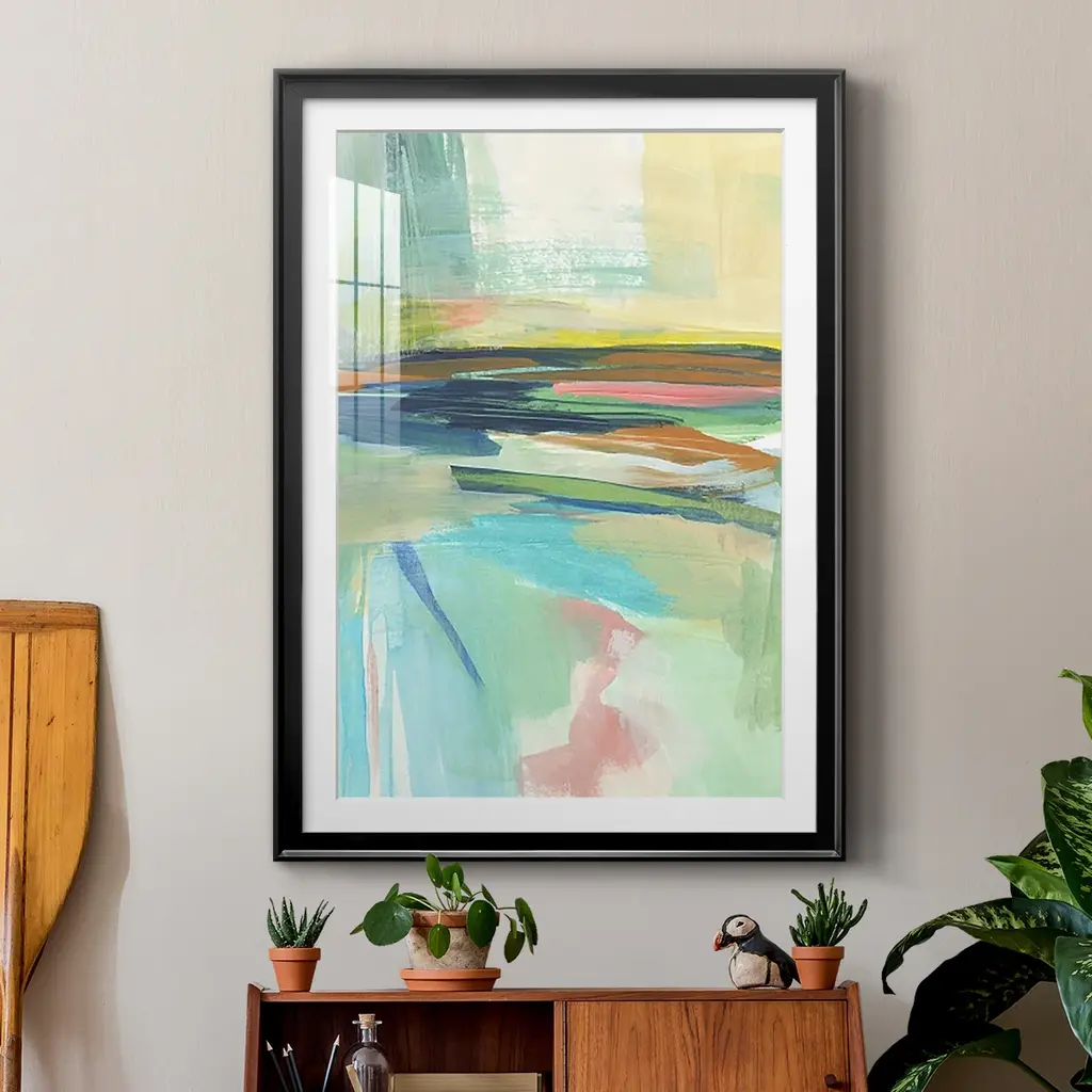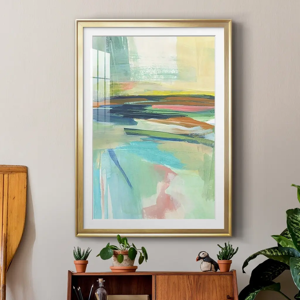 Radiant Horizon II Premium Framed Print - Ready to Hang A Premium Framed Print created to last. Framed in distressed wood and available in an array of sizes and colors Featuring a beveled a solid wood stretcher bar, each piece comes ready to hand 4 SIZES AVAILABLE 30.5''X42.5'' - Overall Size 26.5'X36.5'' - Overall Size 22.5''x30.5'' - Overall Size 18.5''x24.5'' - Overall Size Each piece is made to order. Each piece comes with hanging hardware. Made in the USA Ready to Hang Giclee Paper Print Acrylic Glass Beveled Matt Board