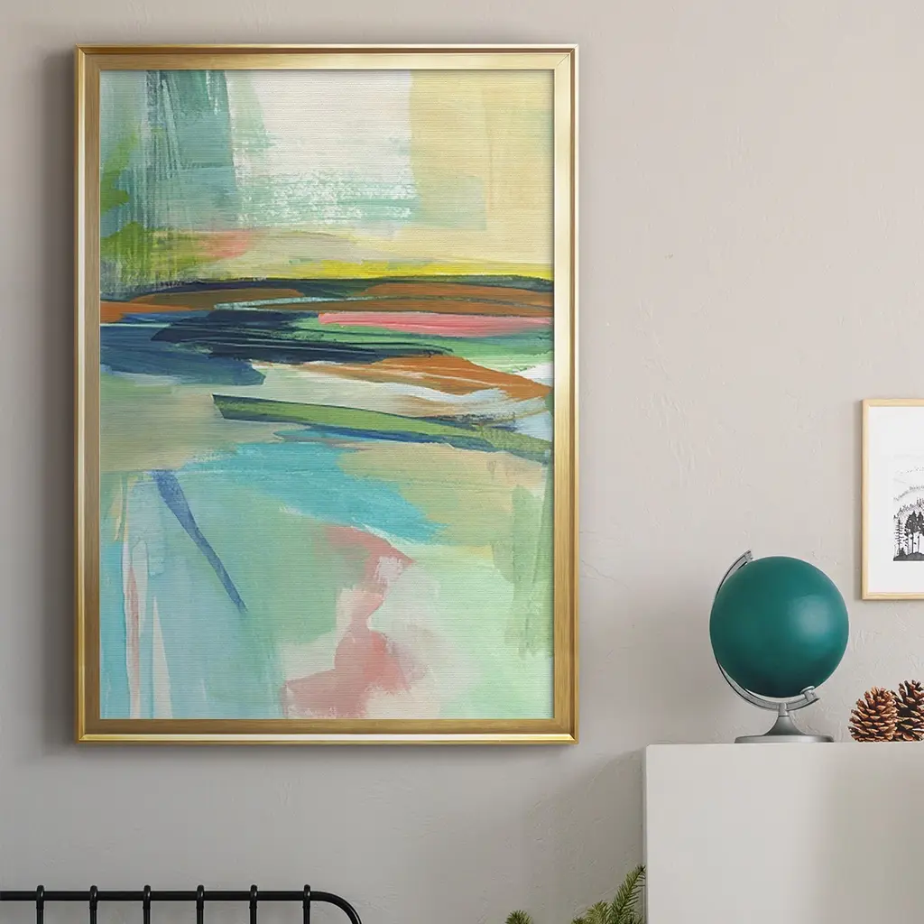 Radiant Horizon II Premium Framed Print - Ready to Hang A Premium Framed Print created to last. Framed in distressed wood and available in an array of sizes and colors Featuring a beveled a solid wood stretcher bar, each piece comes ready to hand 4 SIZES AVAILABLE 30.5''X42.5'' - Overall Size 26.5'X36.5'' - Overall Size 22.5''x30.5'' - Overall Size 18.5''x24.5'' - Overall Size Each piece is made to order. Each piece comes with hanging hardware. Made in the USA Ready to Hang