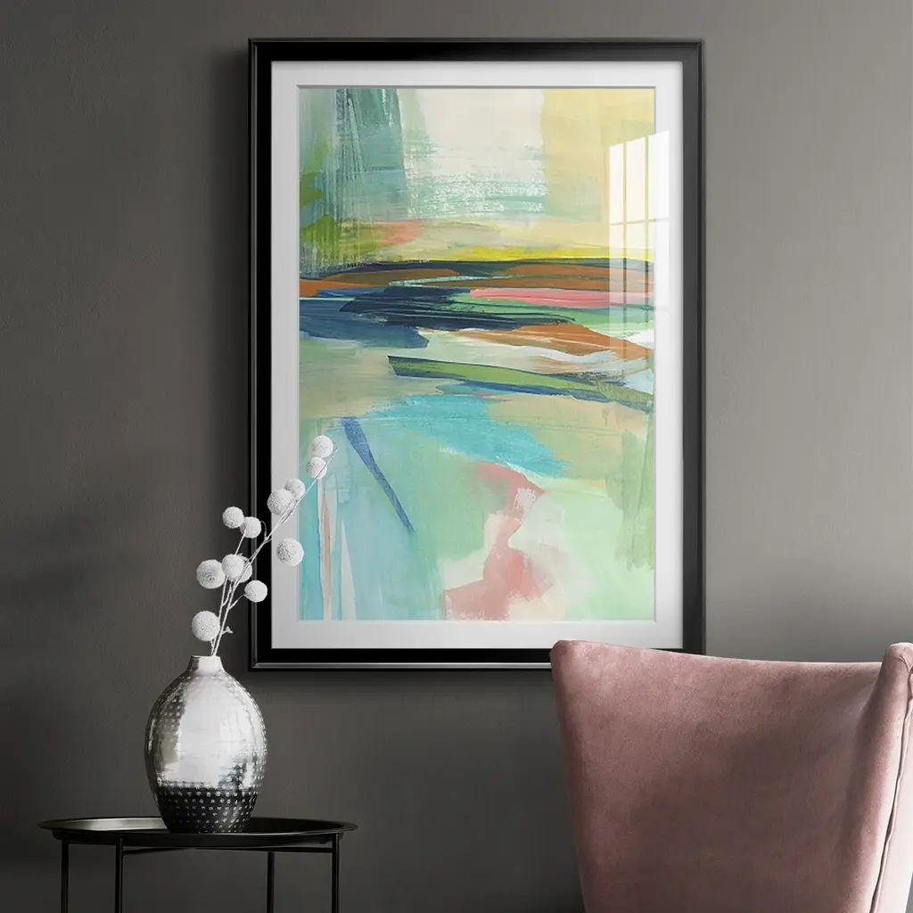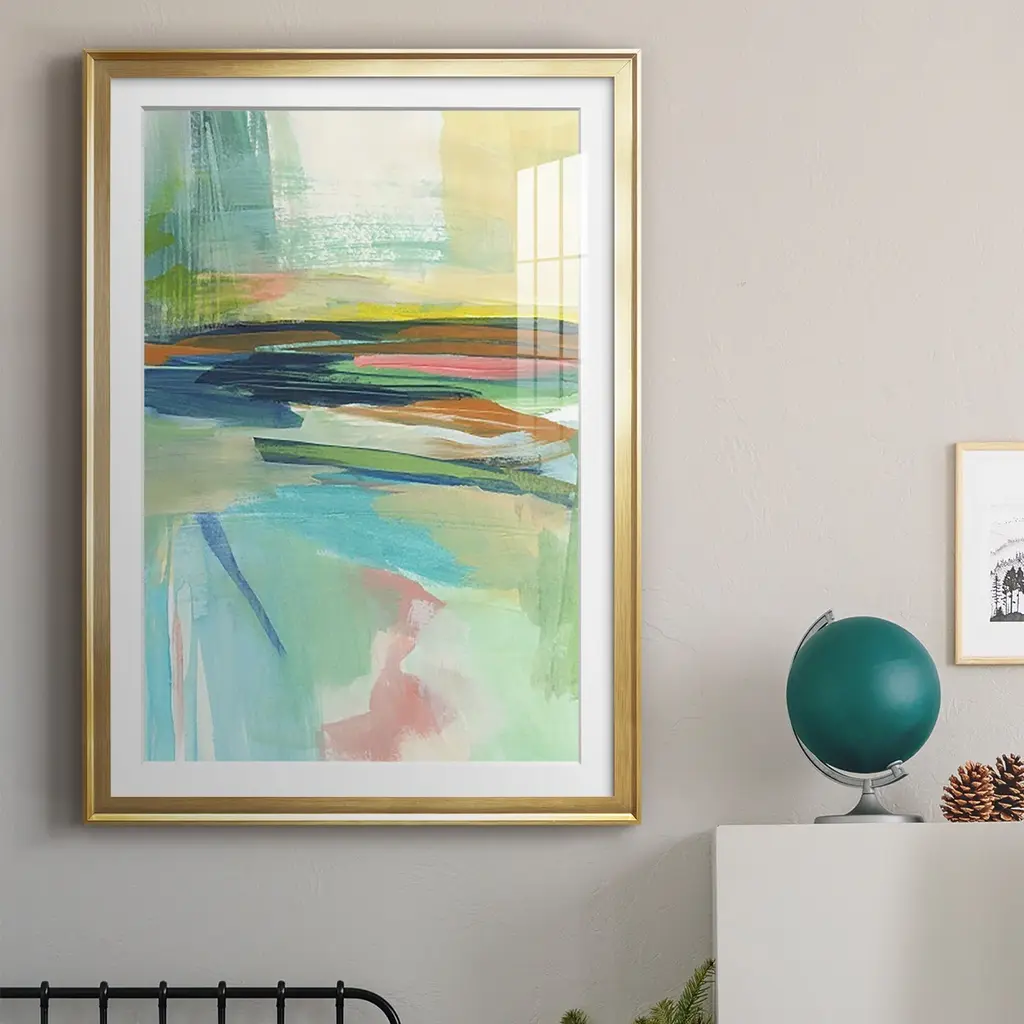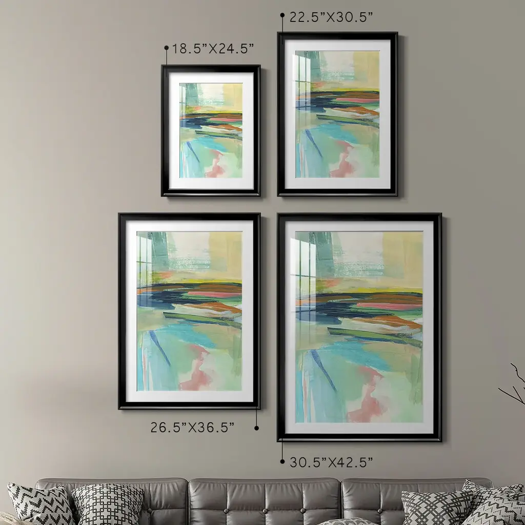 Radiant Horizon II Premium Framed Print - Ready to Hang A Premium Framed Print created to last. Framed in distressed wood and available in an array of sizes and colors Featuring a beveled a solid wood stretcher bar, each piece comes ready to hand 4 SIZES AVAILABLE 30.5''X42.5'' - Overall Size 26.5'X36.5'' - Overall Size 22.5''x30.5'' - Overall Size 18.5''x24.5'' - Overall Size Each piece is made to order. Each piece comes with hanging hardware. Made in the USA Ready to Hang Giclee Paper Print Acrylic Glass Beveled Matt Board