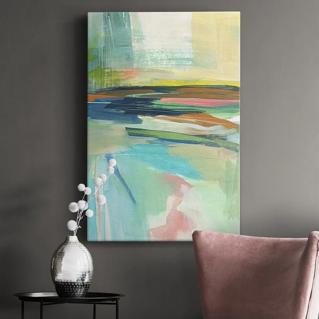 Radiant Horizon II Premium Gallery Wrapped Canvas - Ready to Hang A premium hand stretched gallery wrapped canvas print created to last. Featuring a beveled a solid wood stretcher bar, each piece comes ready to hand 6 SIZES AVAILABLE 8''X12'' - Overall Size 12''X18'' - Overall Size 18''X27'' - Overall Size 24''x36'' - Overall Size 32''x48'' - Overall Size 40''x60'' - Overall Size Each piece is made to order. Built to Last Each piece comes ready to hang Solid wood stretcher Fade and Water resistant Made domestically